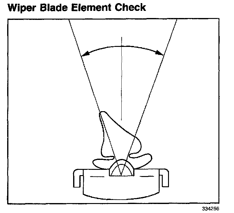 3. Replace the wiper blade element if the rubber element which contacts the glass is not on the centerline of the blade +/-15 degrees. Refer to Wiper Blade Element Replacement.
