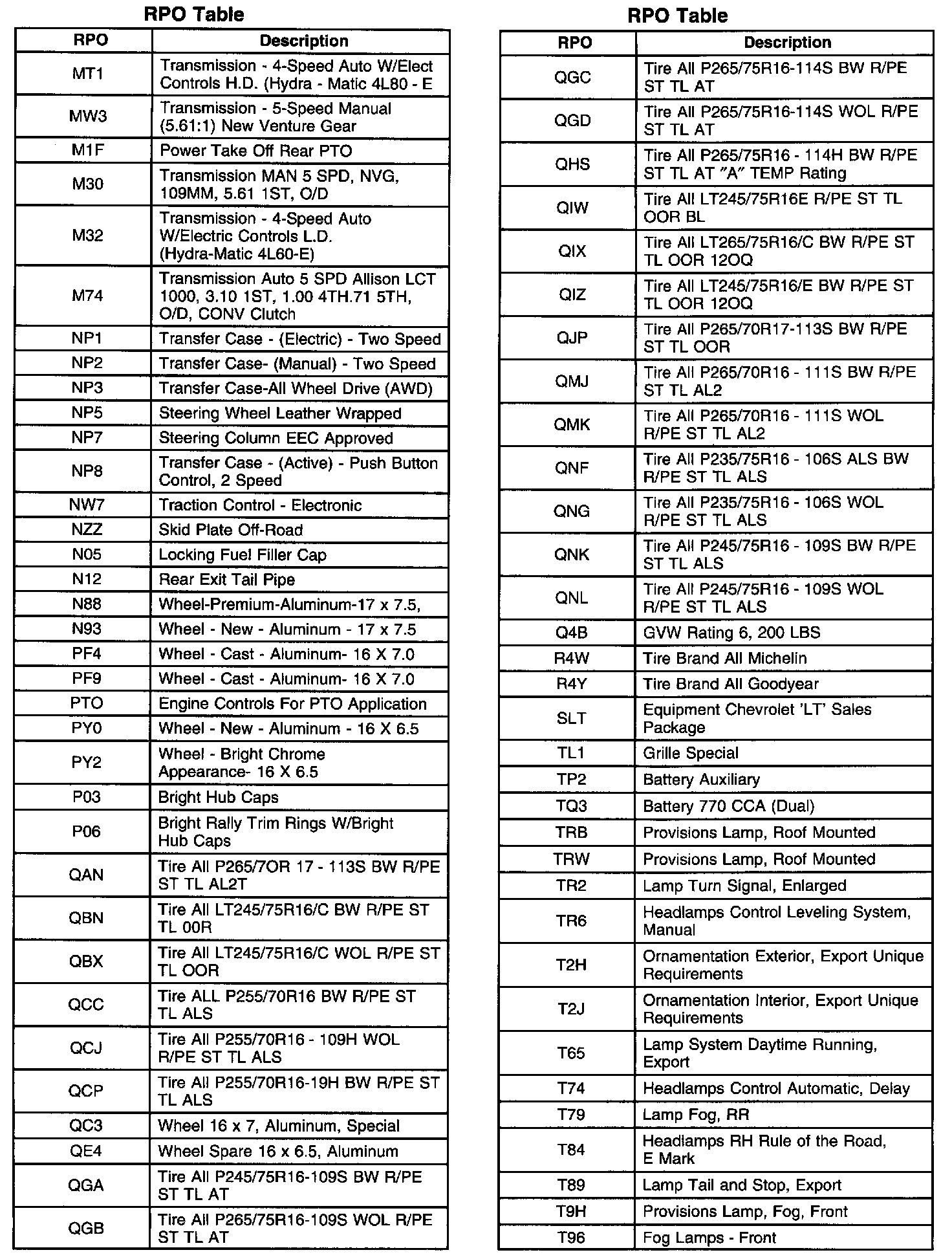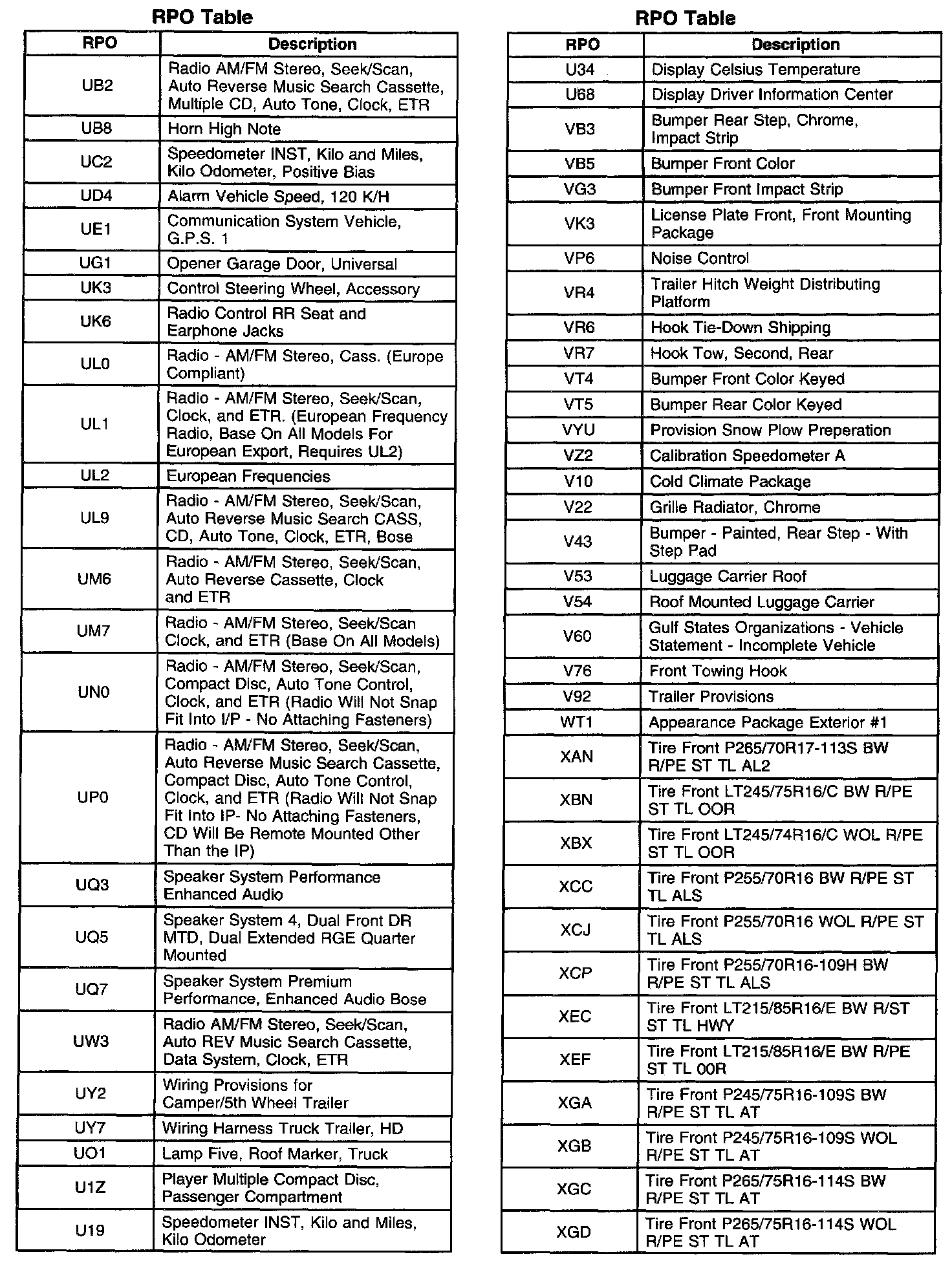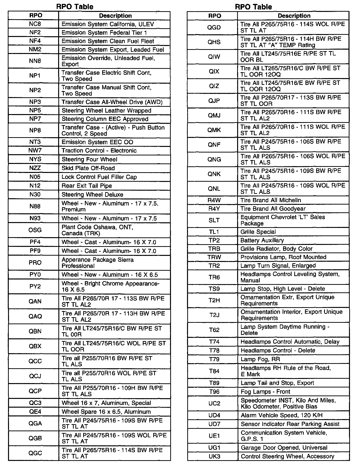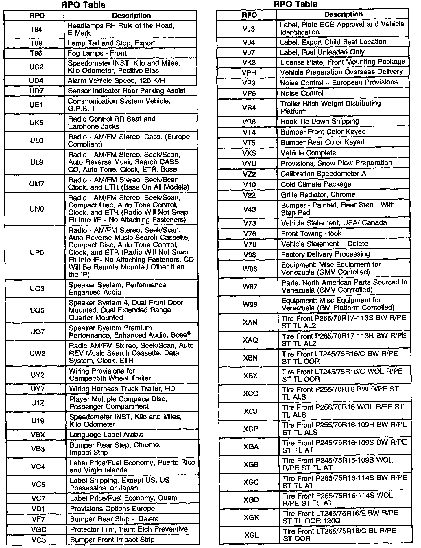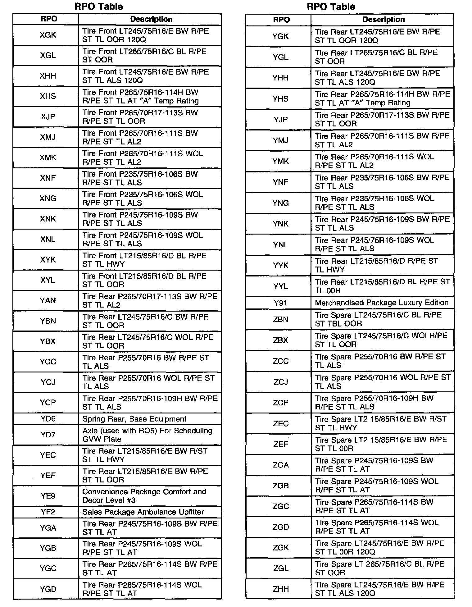 FOR THE YEAR 2001RPO Table (Part 1 Of 6):