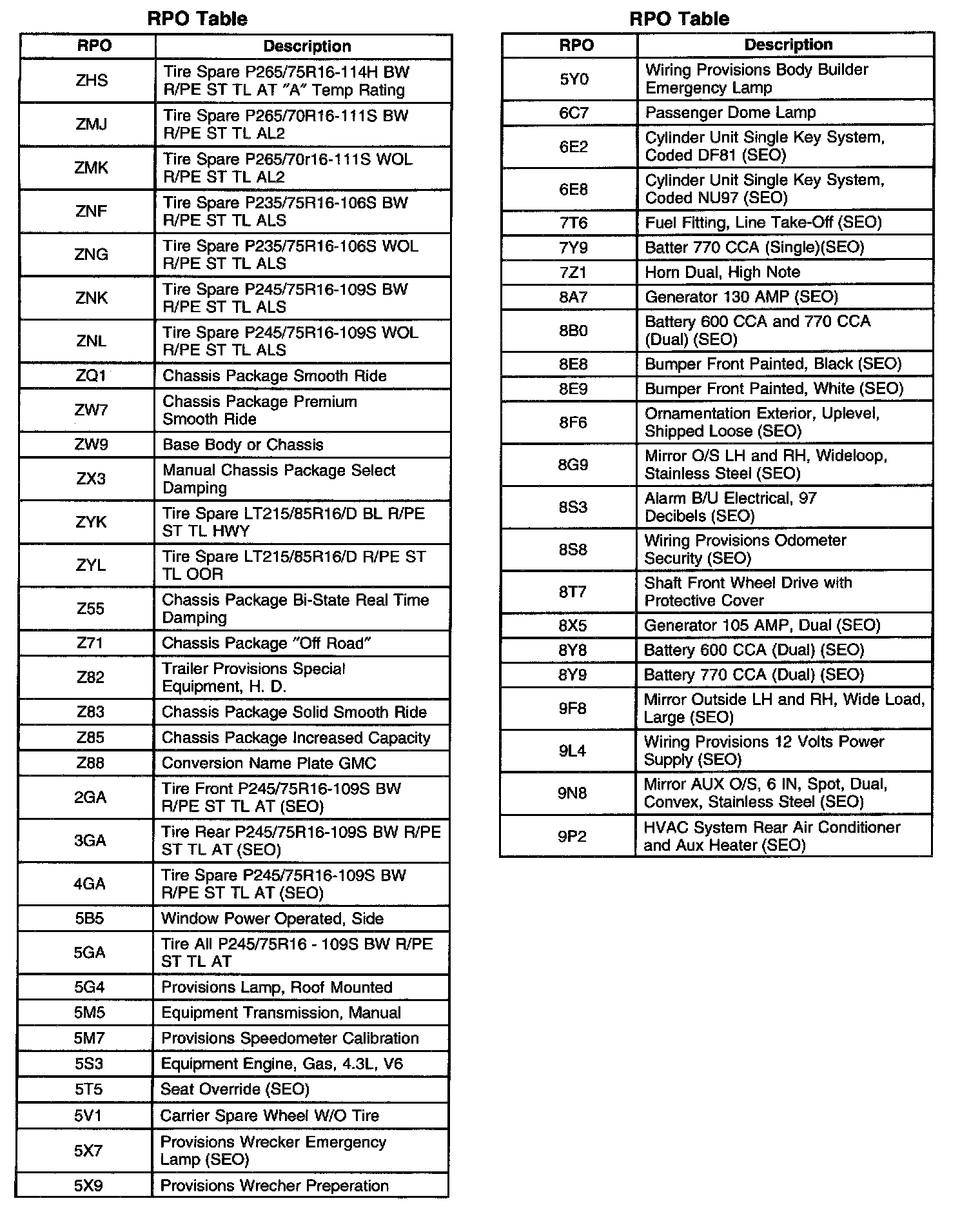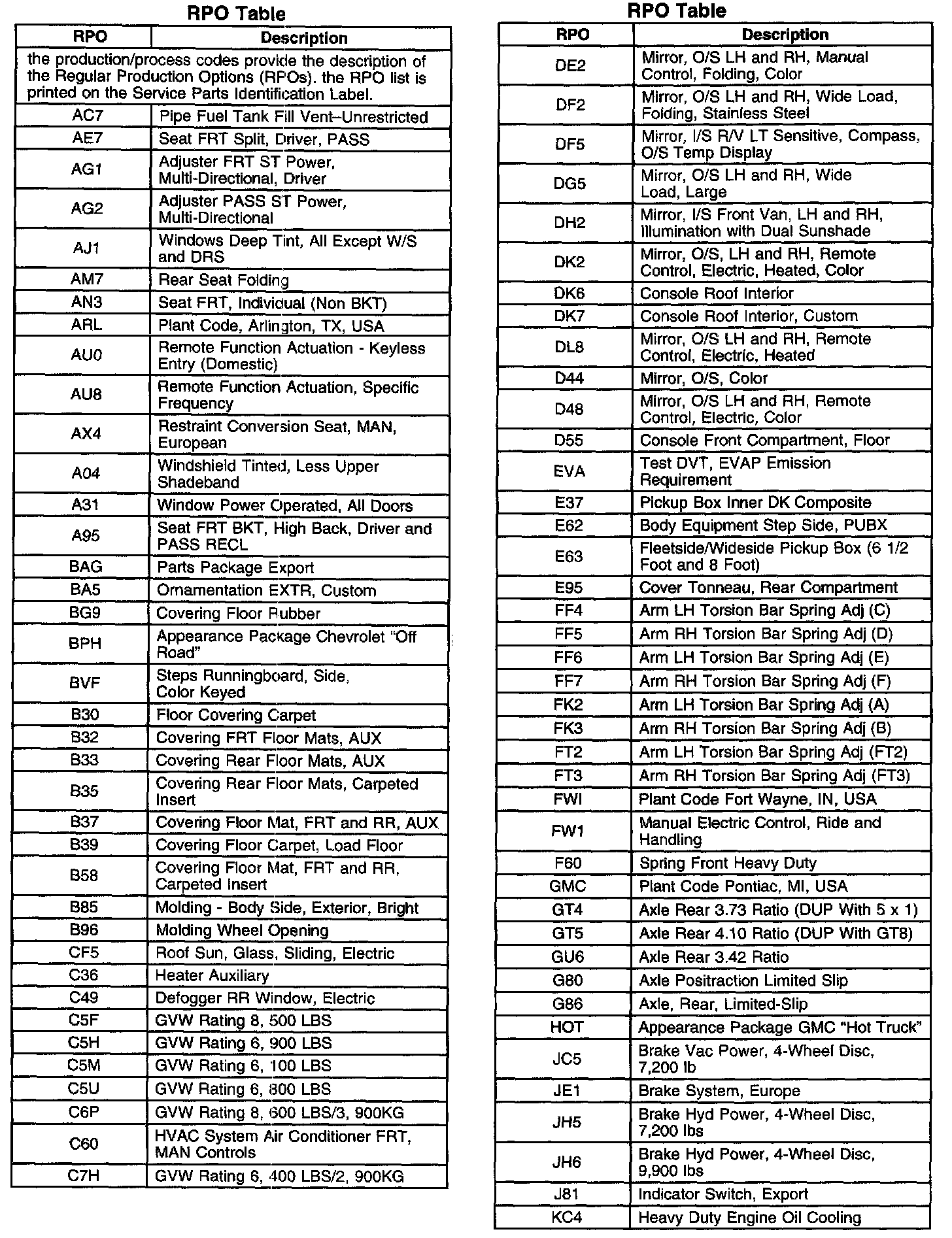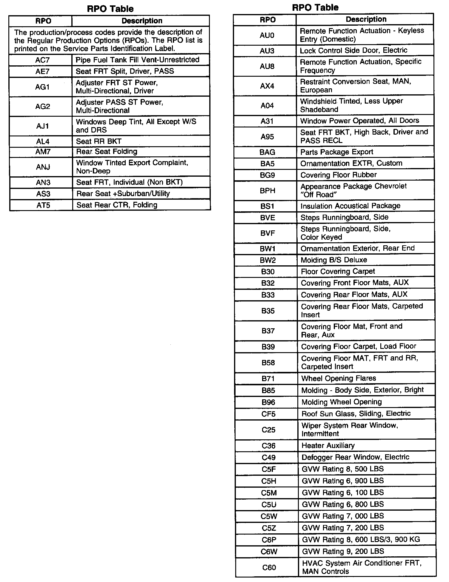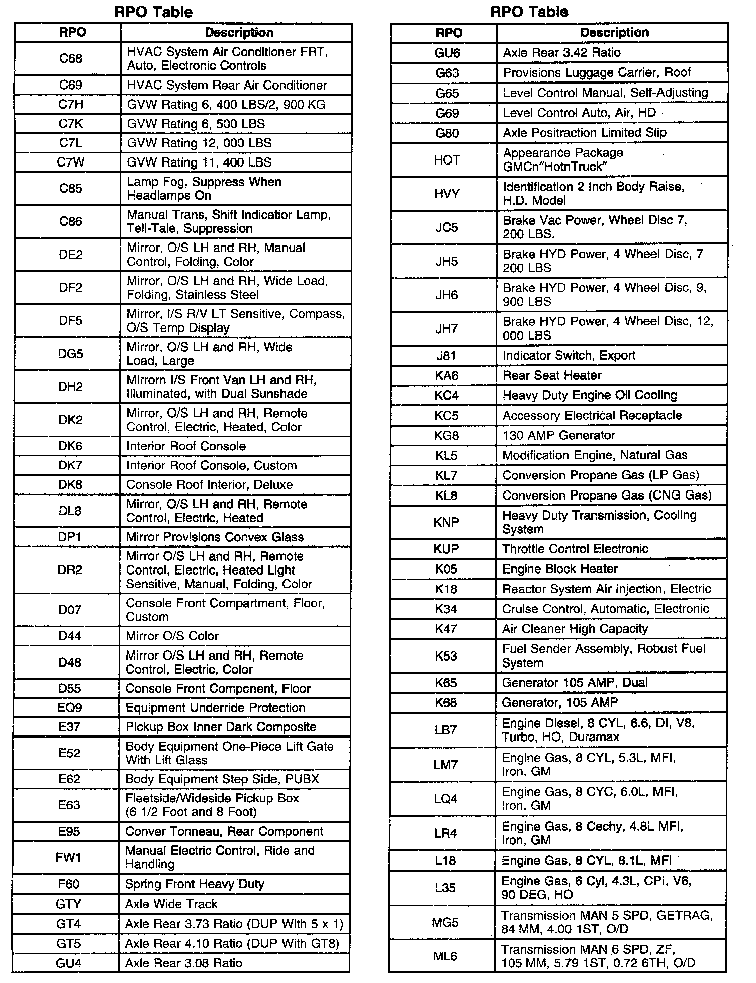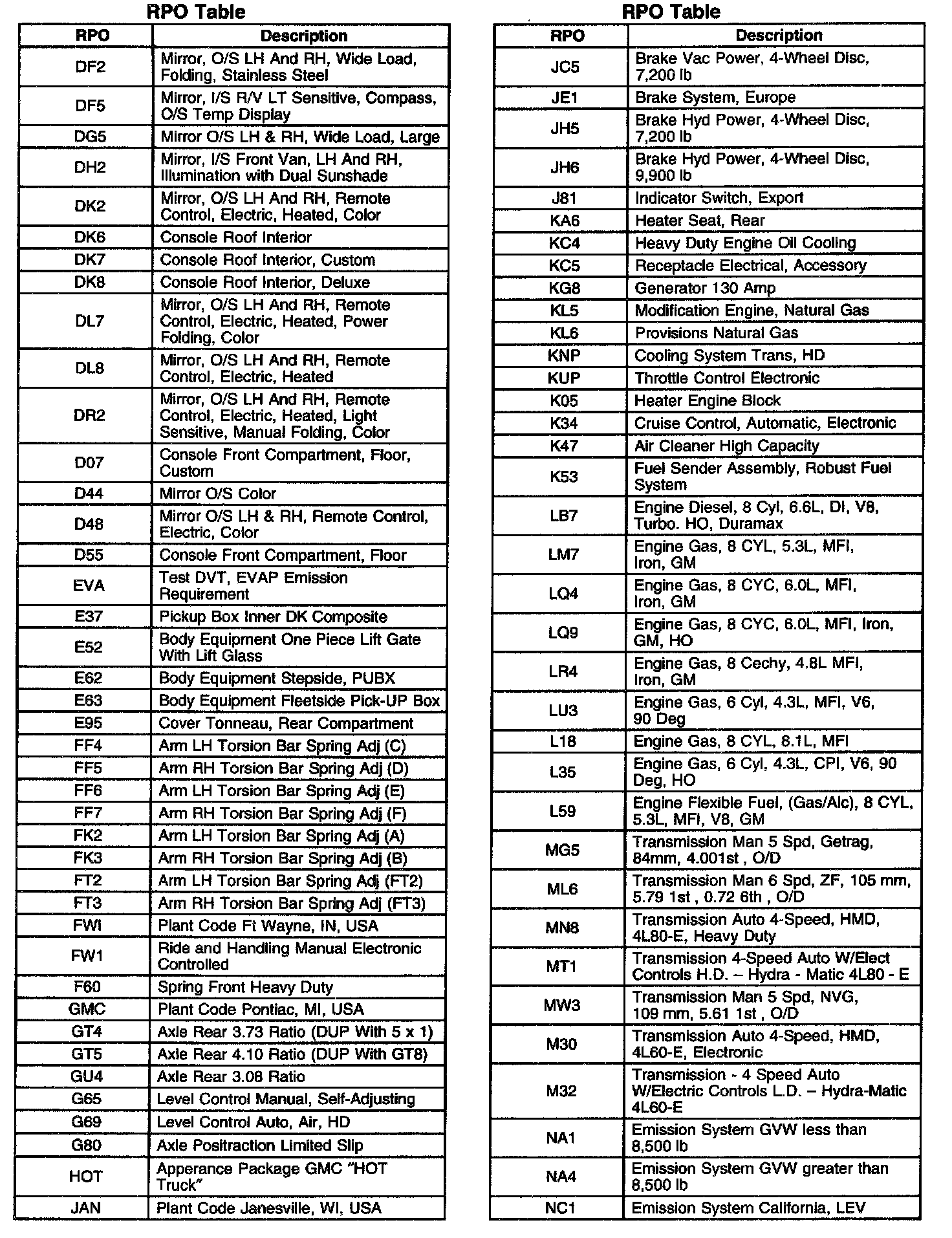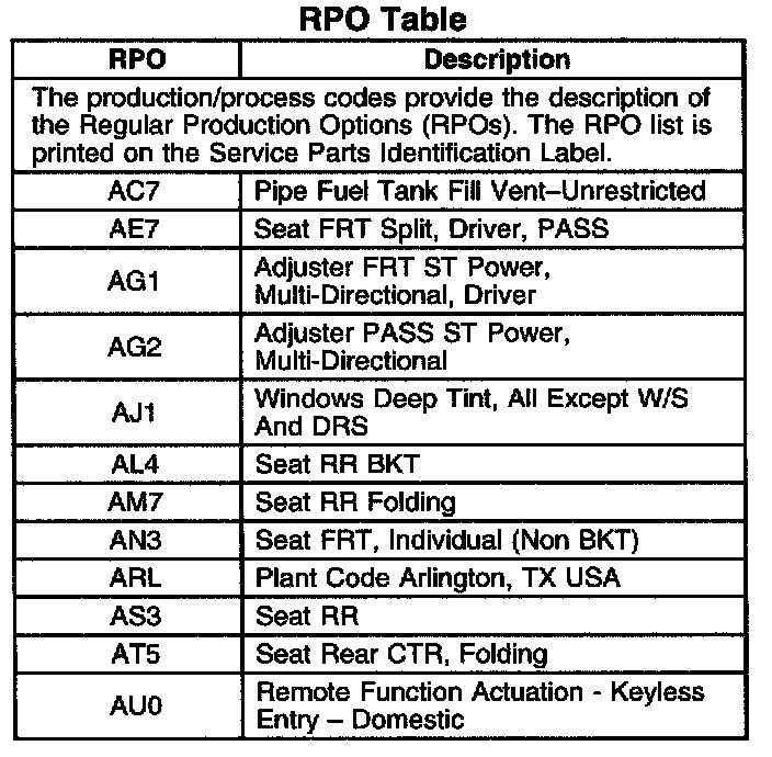 FOR THE YEAR 2001RPO Table (Part 1 Of 6):
