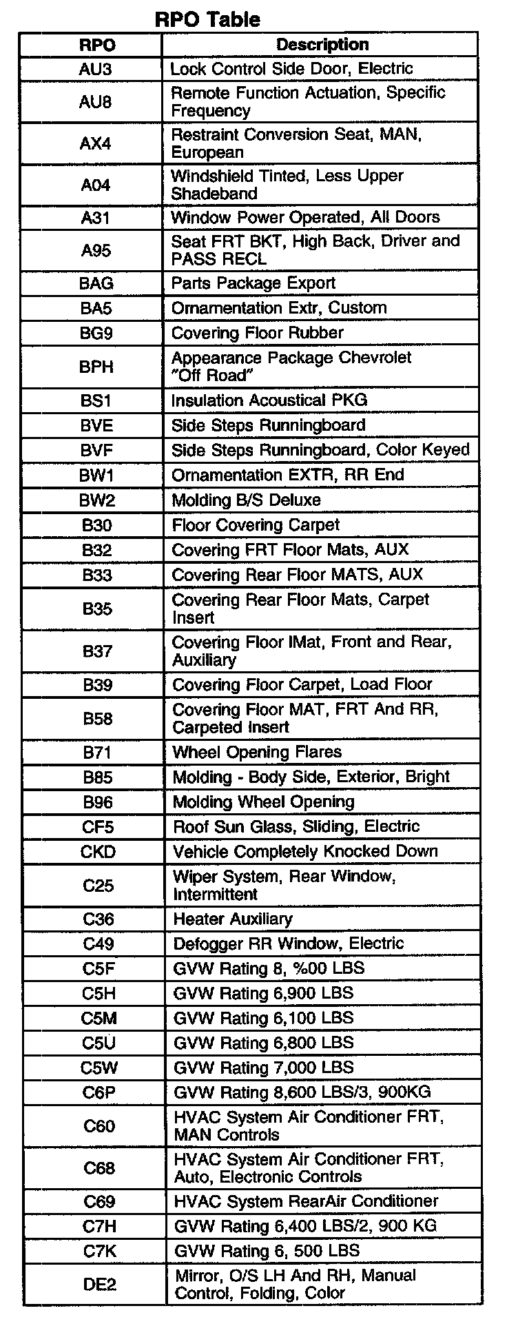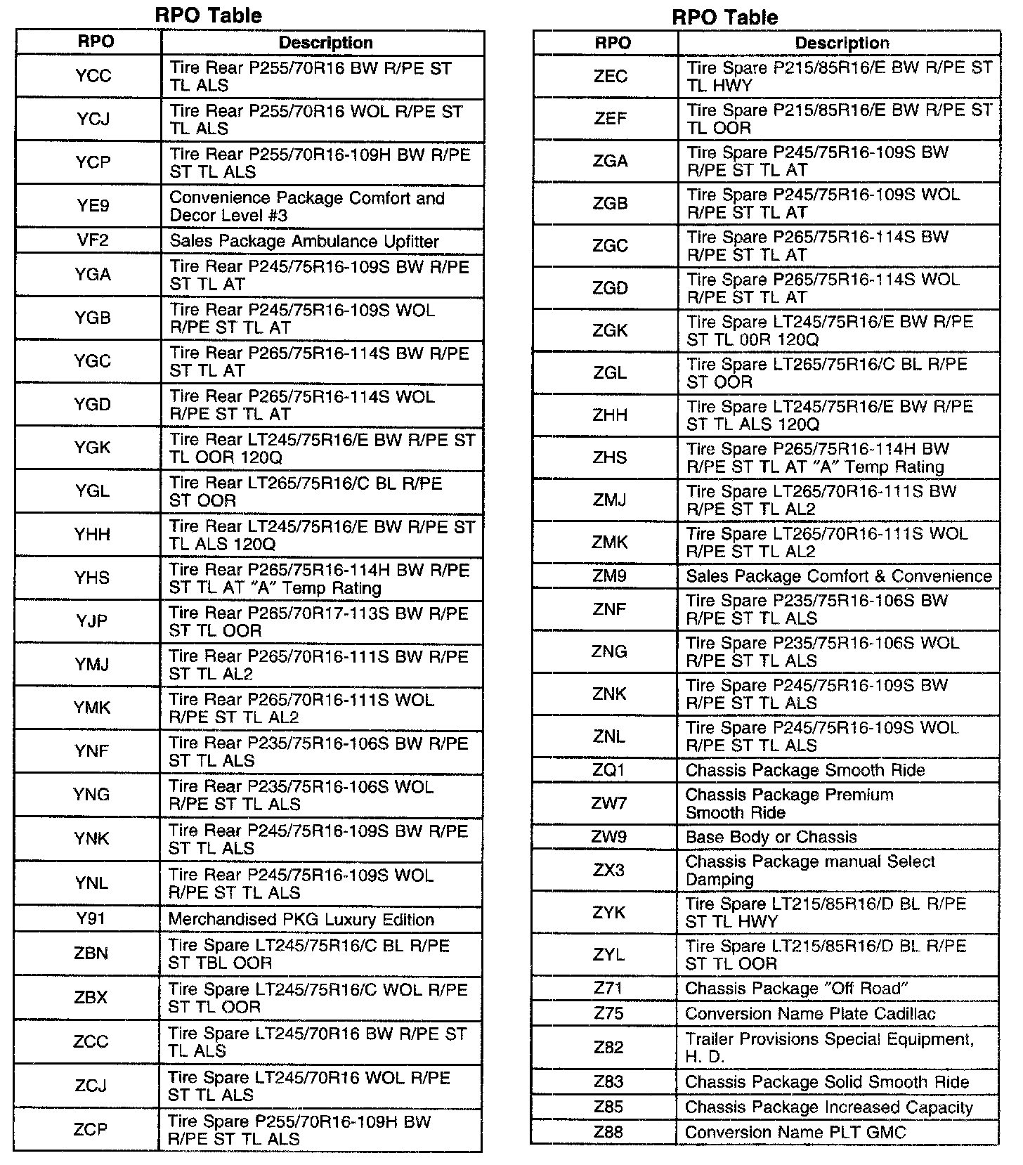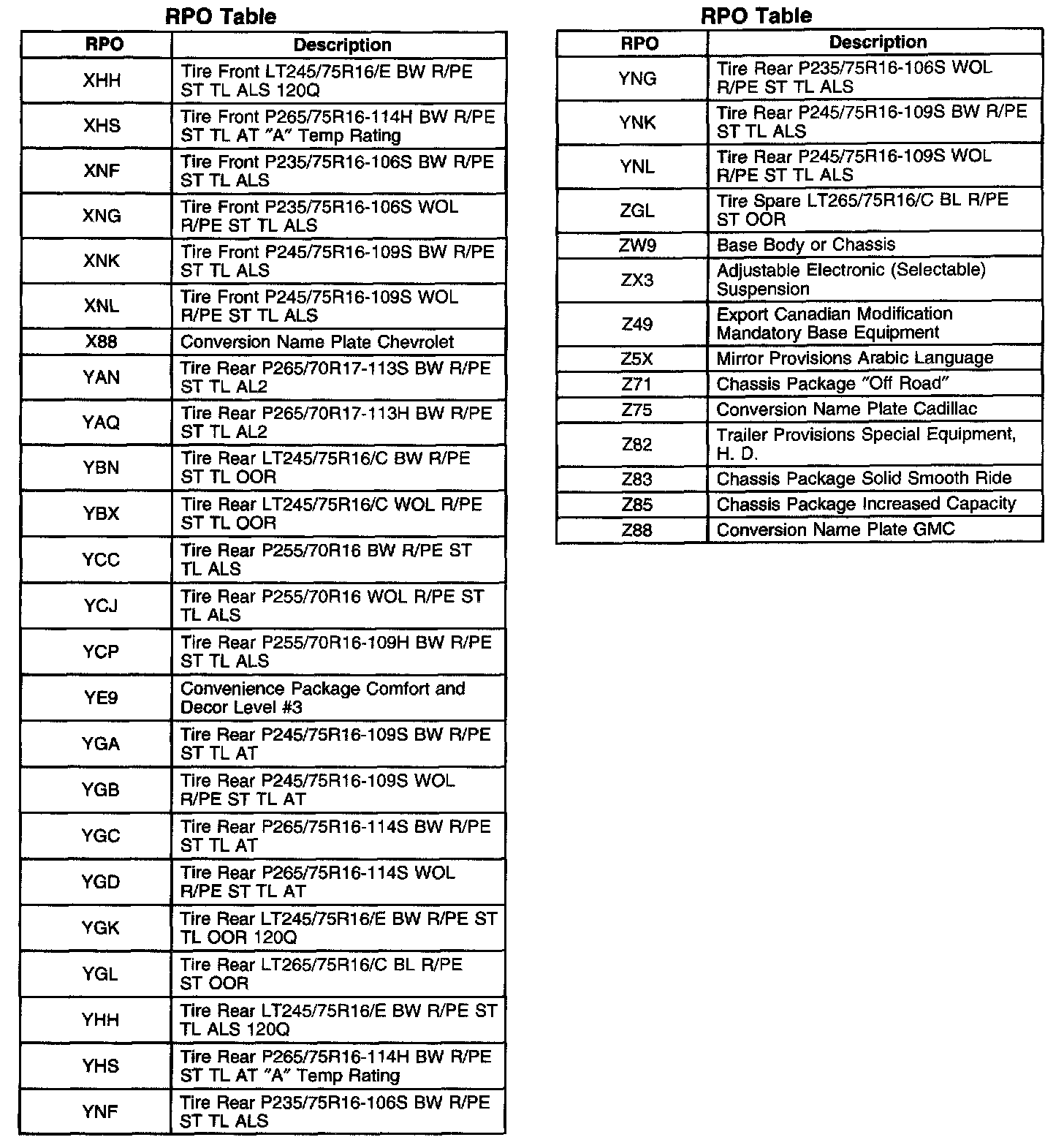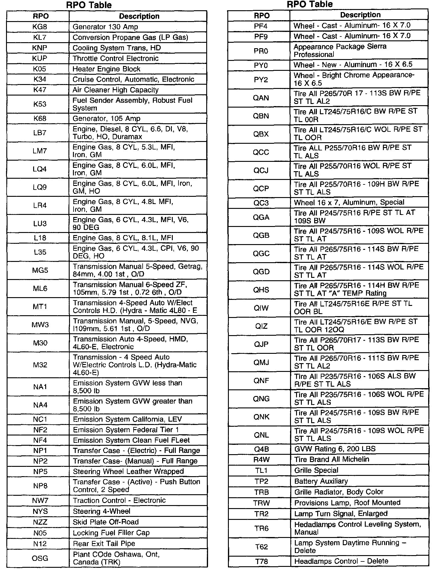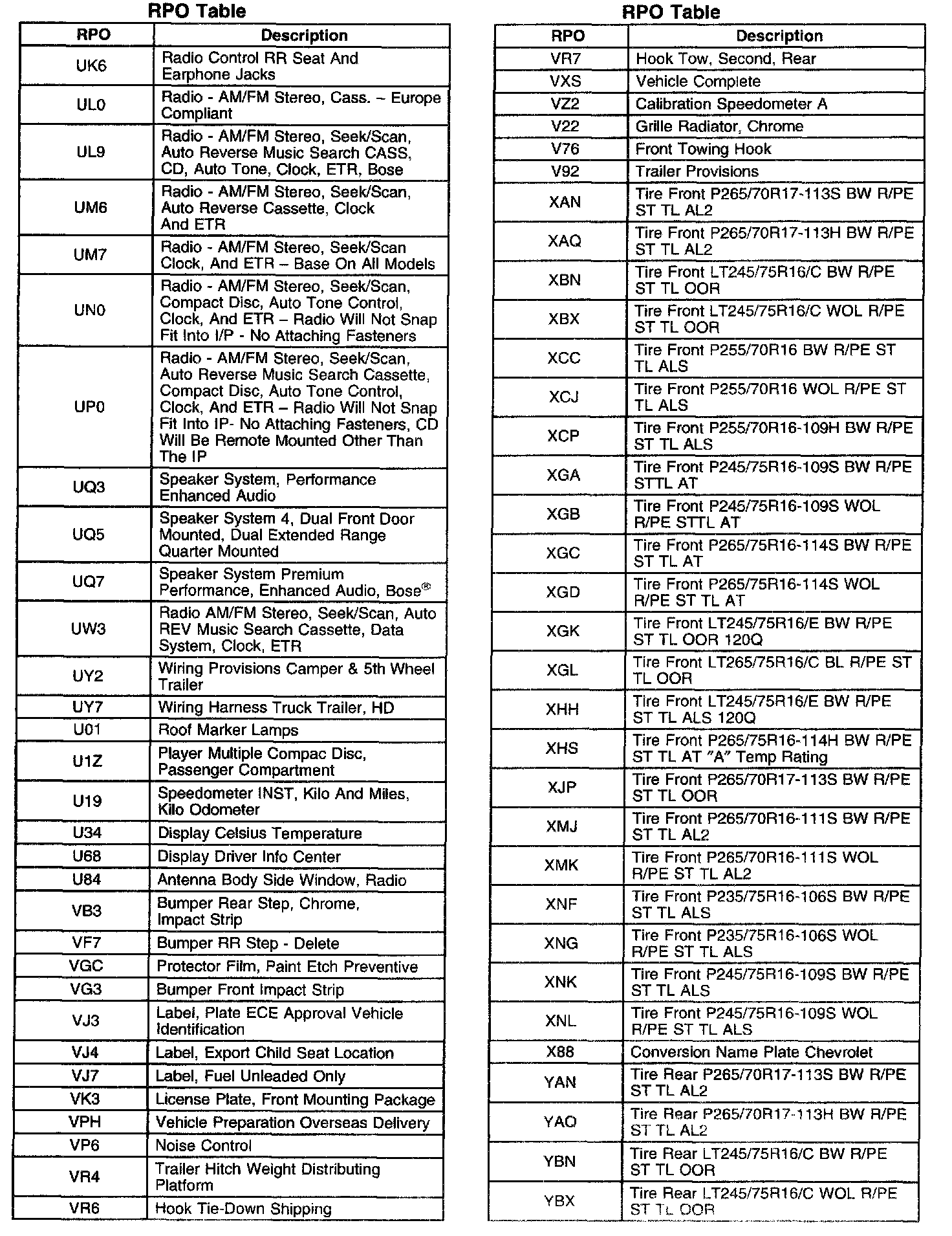 FOR THE YEAR 2001RPO Table (Part 1 Of 6):