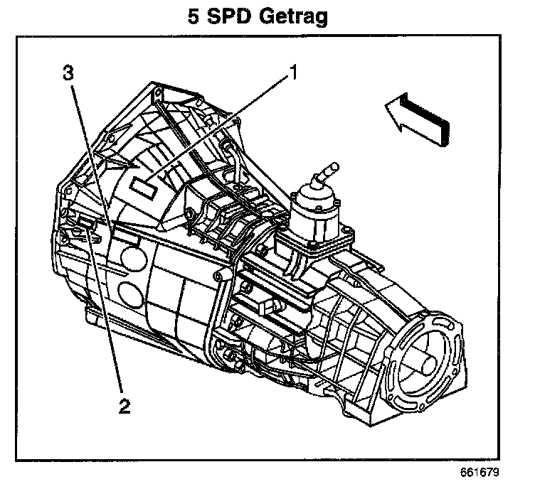 Transmission ID and VIN derivative locations (1, 2). The right hand stamping is shown, left hand is opposite. Pin or hand stamp location (3) for the transmission ID or VIN derivative.