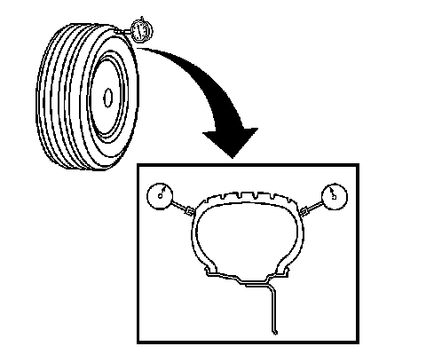 2. Dismount the tire from the wheel. Refer to Tire Mounting and Dismounting in Tires and Wheels.