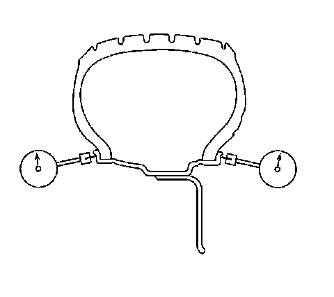5. If any of the tire beads were not properly or evenly seated, reseat the tire bead, then proceed to step 6. Refer to Tire Mounting and Dismounting in Tires and Wheels.