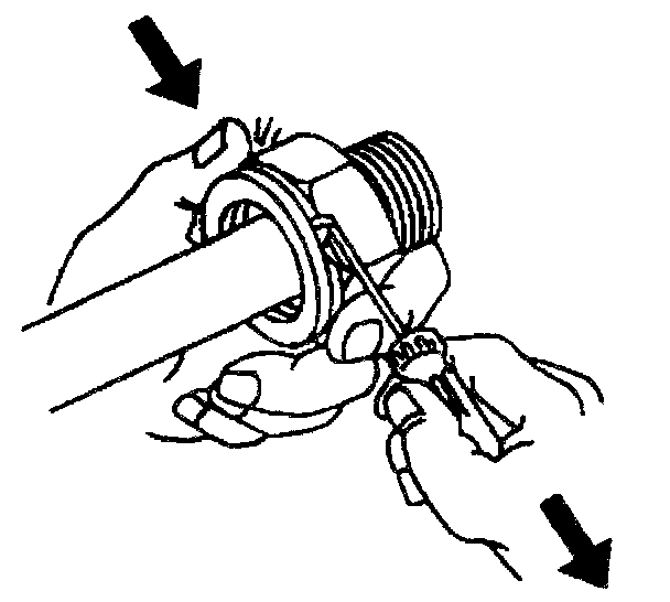 13. Pull back sharply on the cooler line in order to ensure that the cooler line is installed in the quick connect fitting.