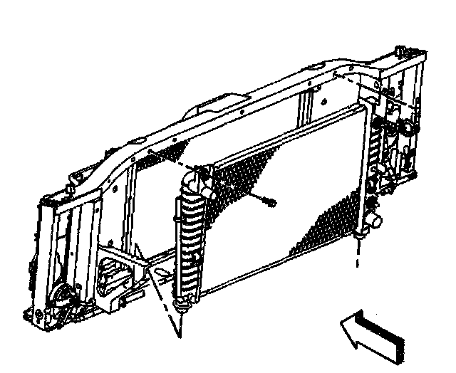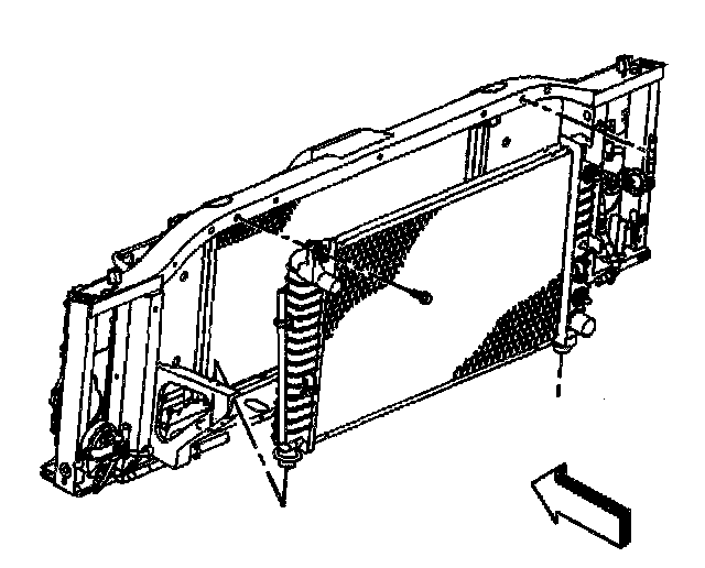 1. Install the radiator by pushing down, until the lower mounts rest on the radiator support.