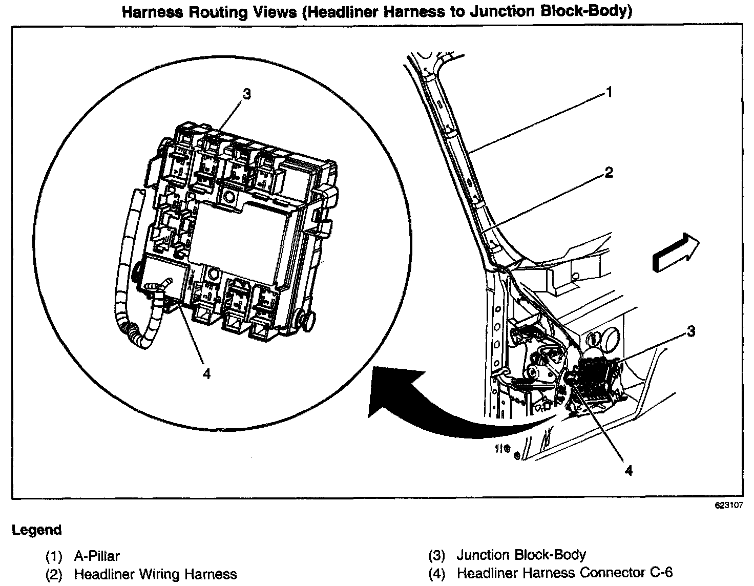 Harness Routing Views (Headliner Harness To Junction Block-Body):