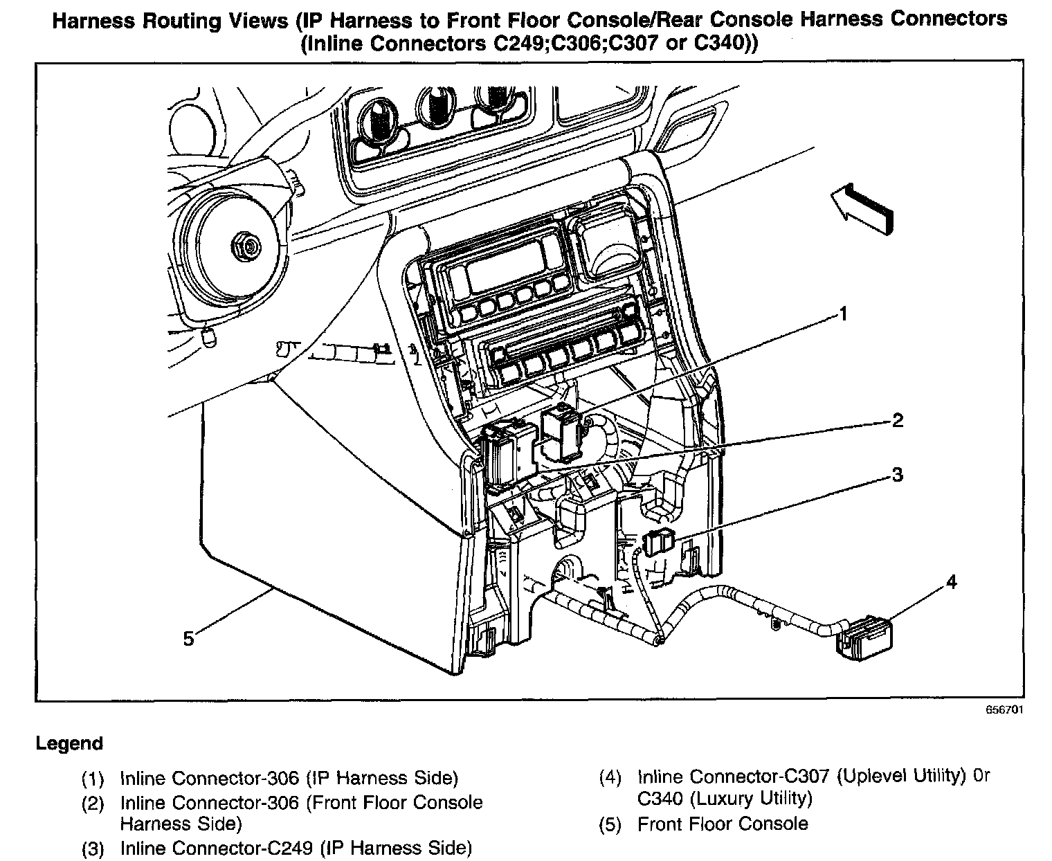 Harness Routing Views (IP Harness To Front Floor Console/Rear Console Harness Connectors (Inline Connectors C249; C306; C307 Or C340)):