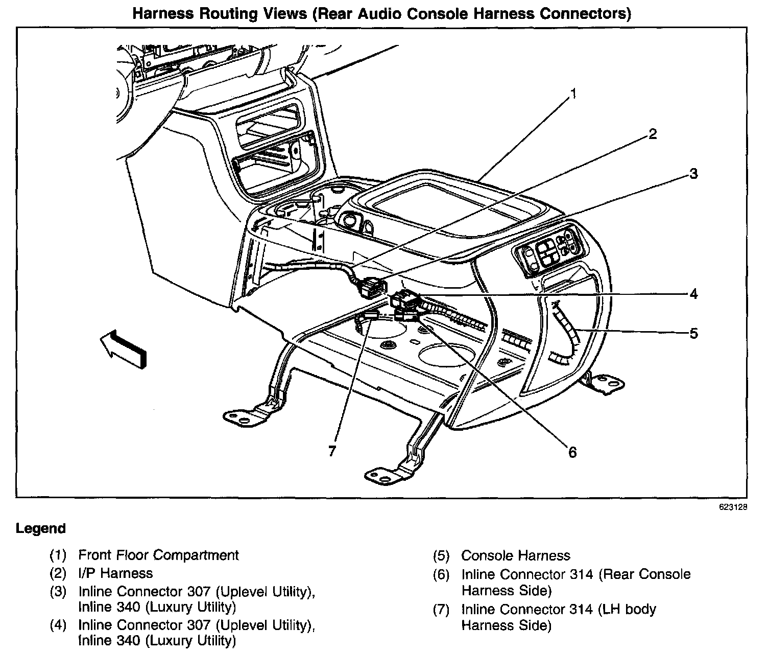 Harness Routing Views (Rear Audio Console Harness Connectors):