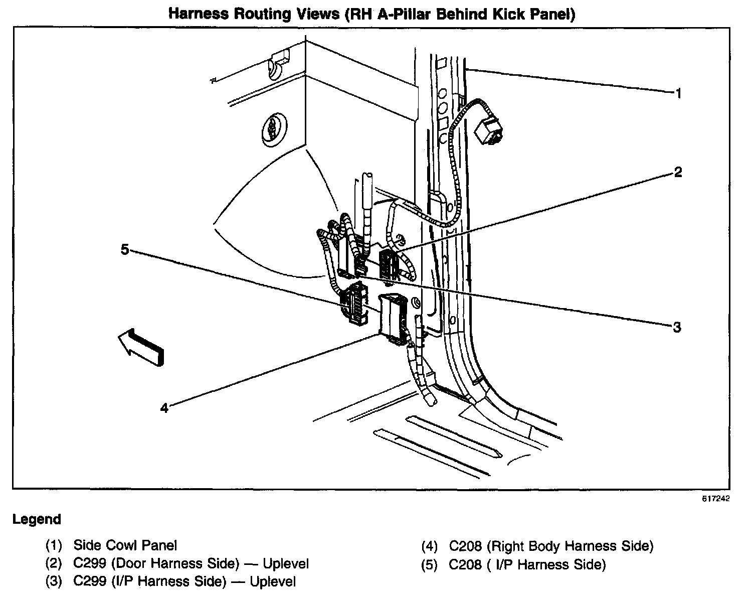 Harness Routing Views (RH A-Pillar Behind Kick Panel):