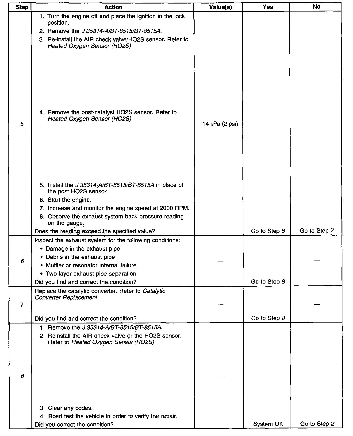 8. Confirming that the condition has been fixed is essential. If the symptom still exists and the vehicle has a dual exhaust system, proceed to Step 2 and repeat diagnostic procedure on the opposite exhaust pipe.