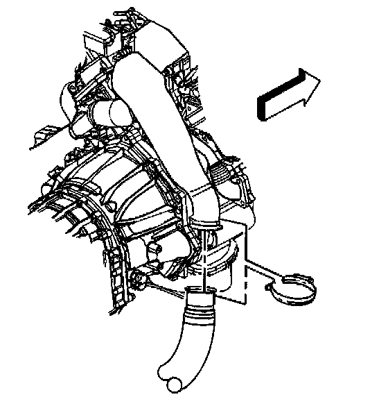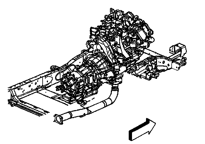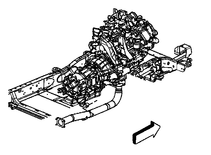 1. From under the vehicle, position the exhaust outlet to rear of the engine Do not install the outlet to the turbocharger.