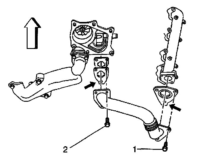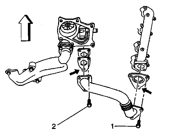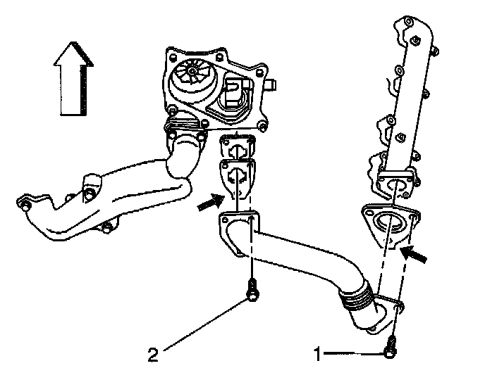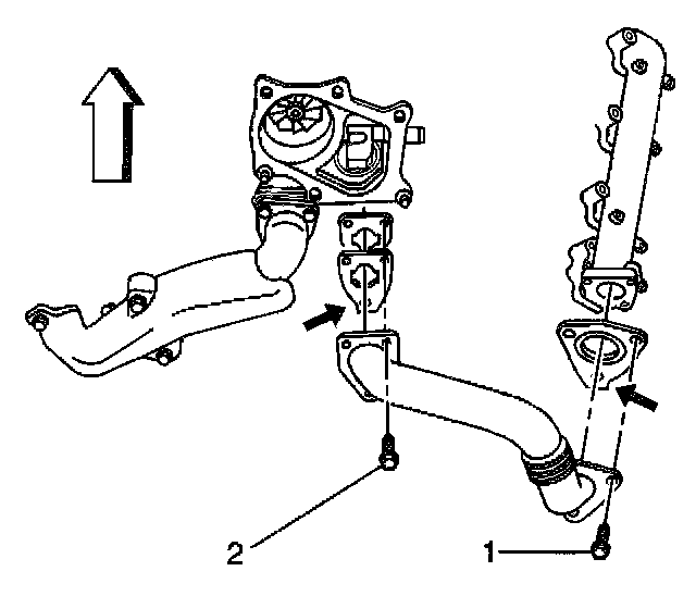 3. Install the exhaust pipe to turbocharger bolts (2).