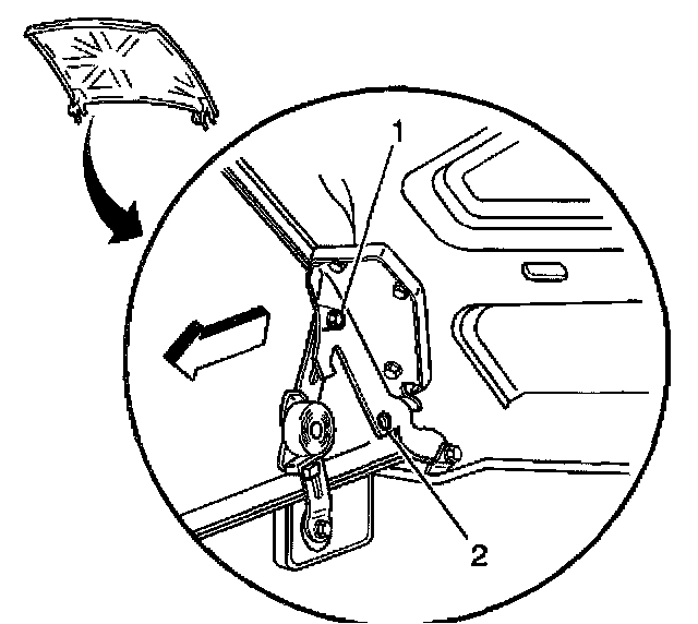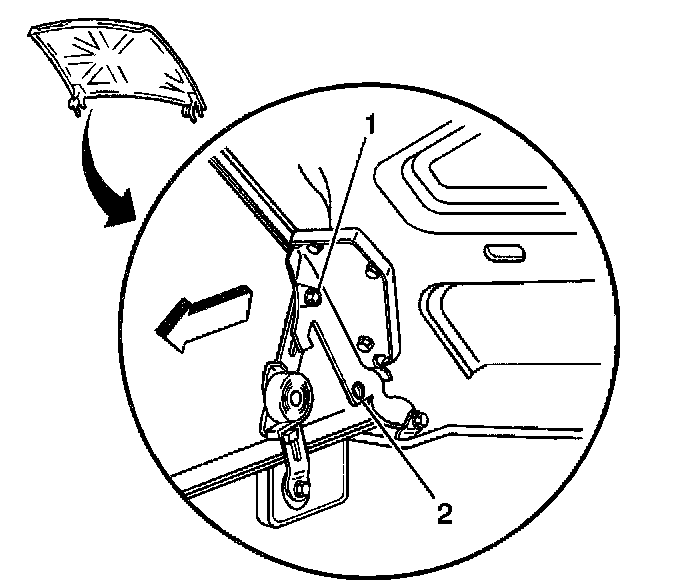11. Move the hood to the service position by moving the hood hinge bolts (1) to the service positions (2).