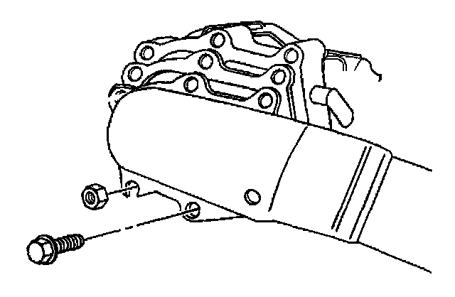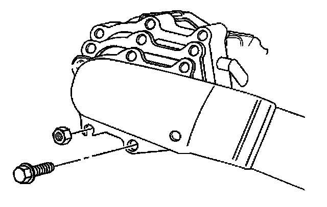 9. Remove the lower bolt (2) retaining the heat shield to the exhaust outlet.