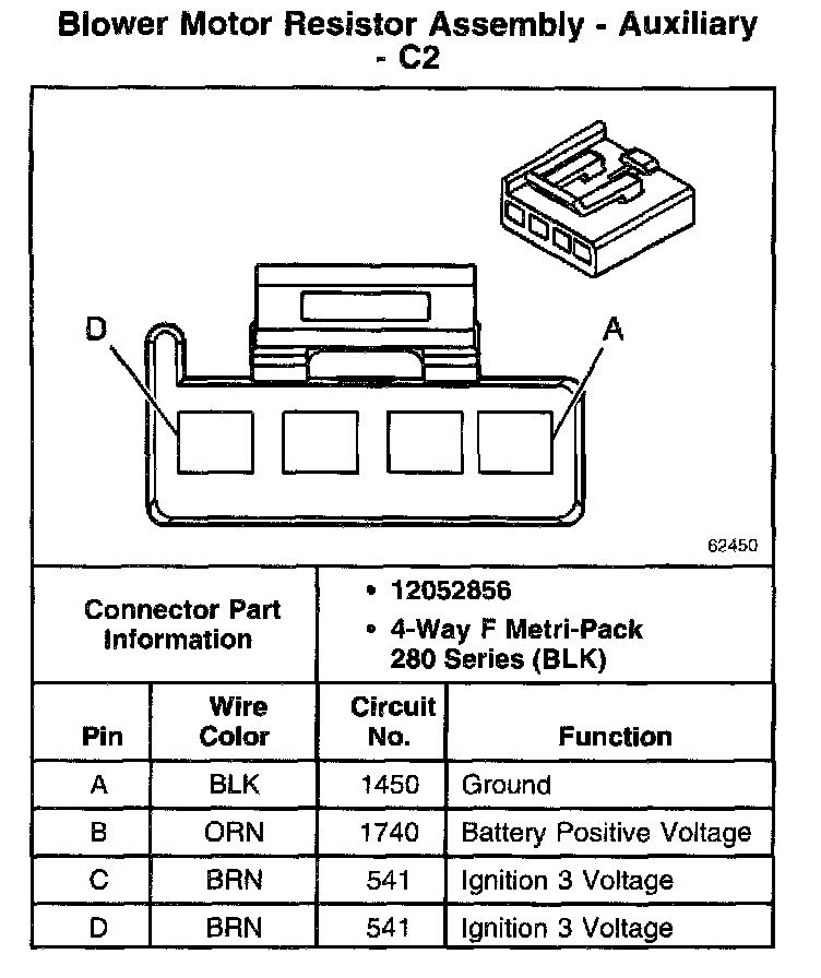 Blower Motor Resistor Assembly - Auxiliary - C2: