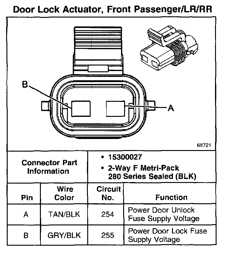 Door Lock Actuator, Front Passenger/LR/RR