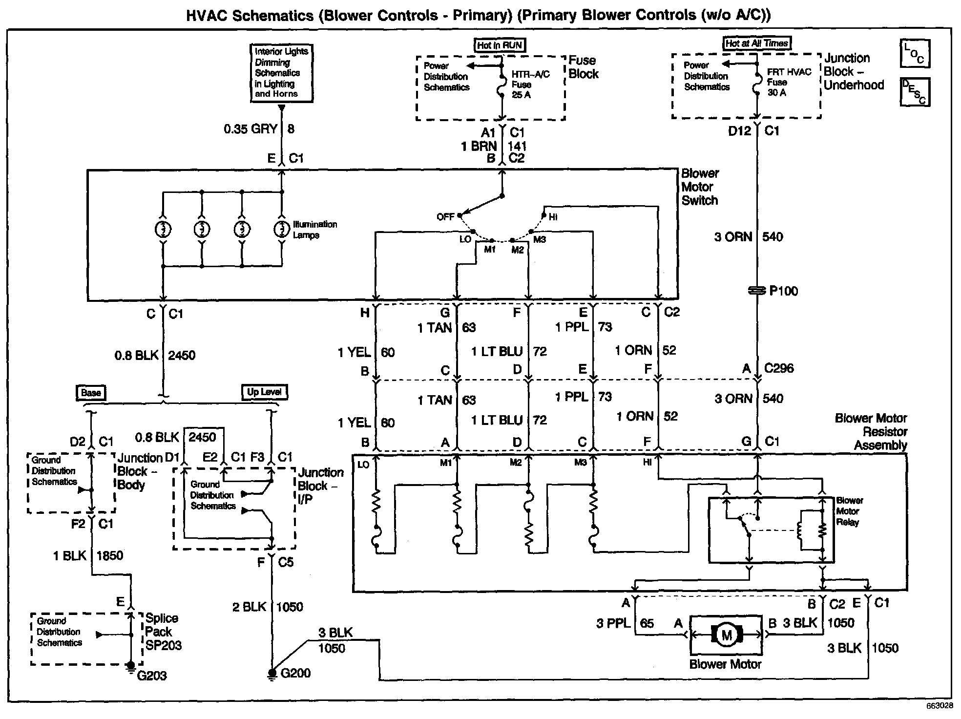 HVAC Schematics: Blower Controls - Primary (Primary Blower Controls (W/O A/C)):