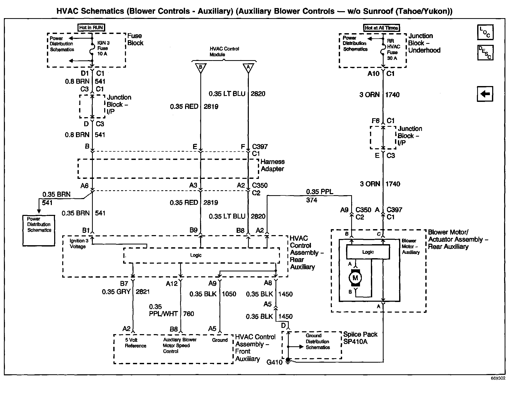 HVAC Schematics: Blower Controls - Auxiliary (Auxiliary Blower Controls - W/O Sunroof (Tahoe/Yukon)):