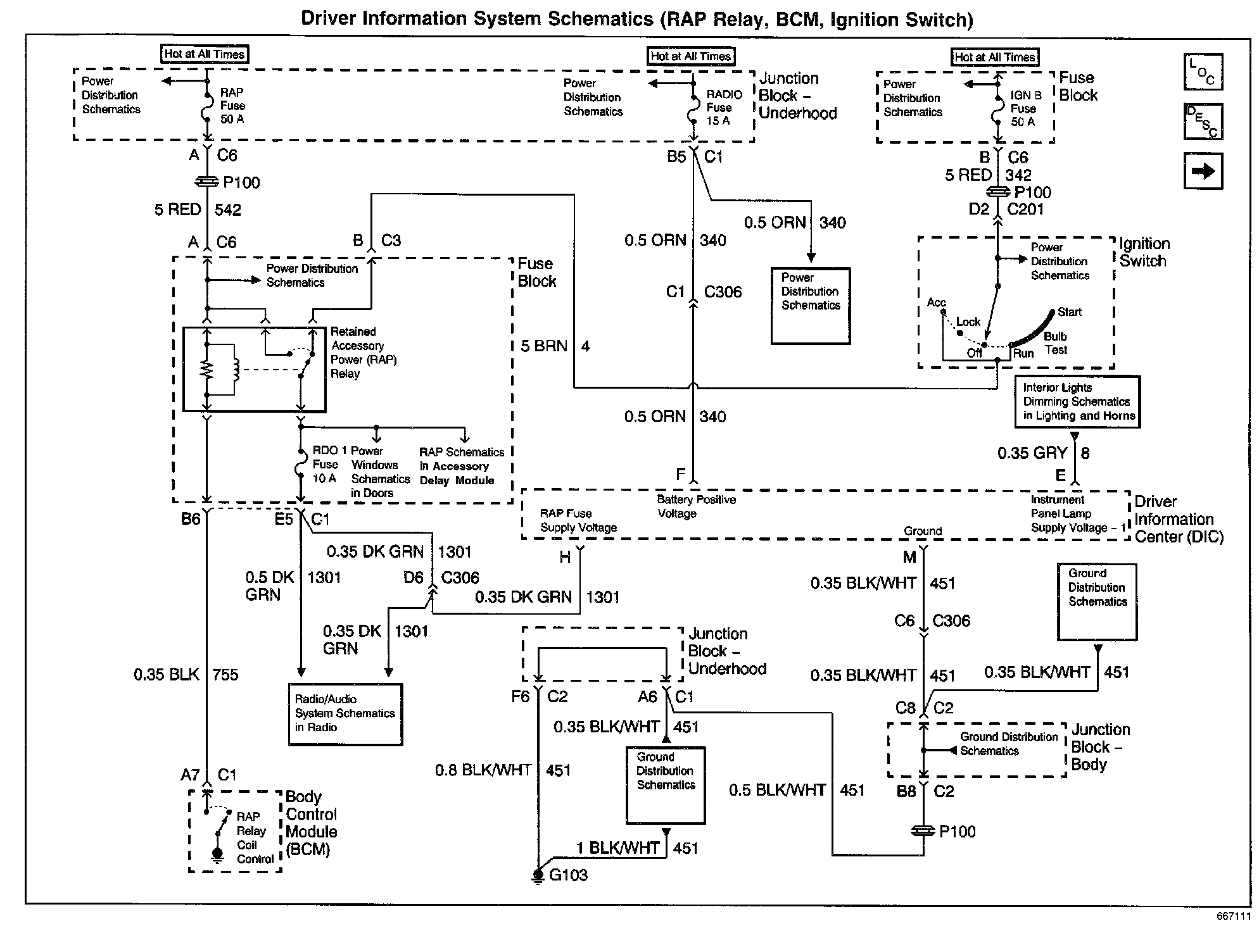 Driver Information System Schematics: RAP Relay, BCM, Ignition Switch: