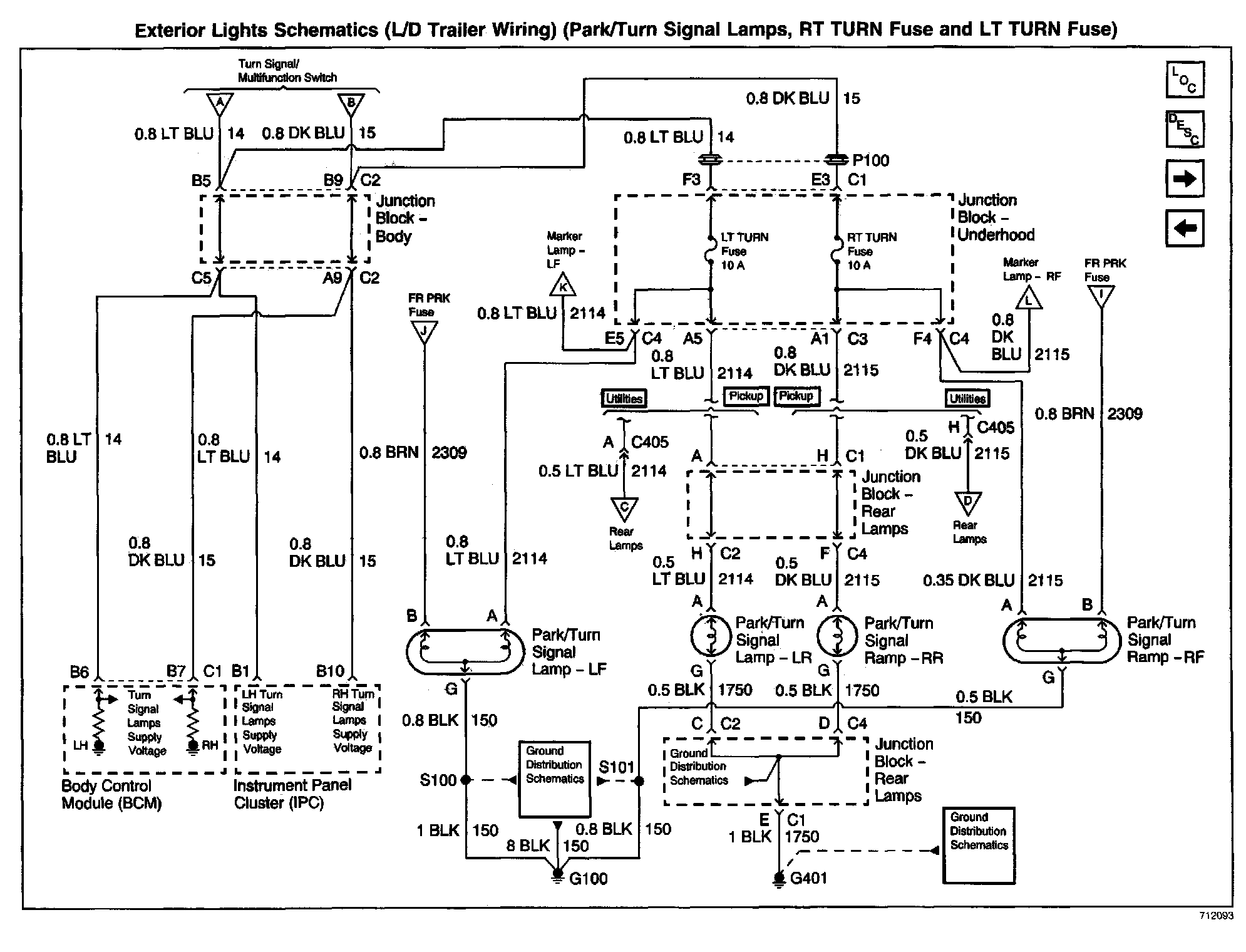 Exterior Lights Schematics: L/D Trailer Wiring (Park/Turn Signal Lamps, RT TURN Fuse And LT TURN Fuse):