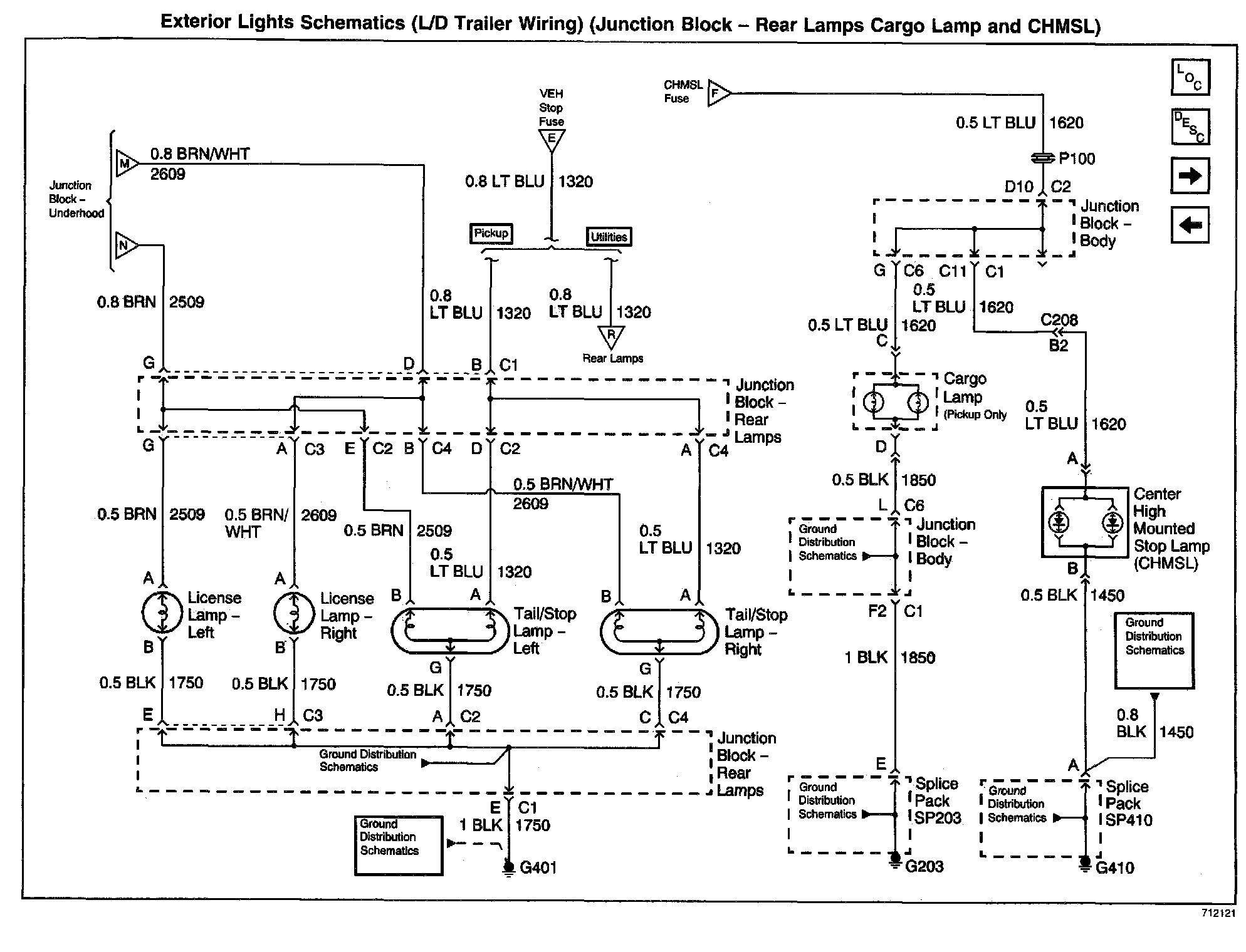 Exterior Lights Schematics: L/D Trailer Wiring (Junction Block - Rear Lamps Cargo Lamp And CHMSL):