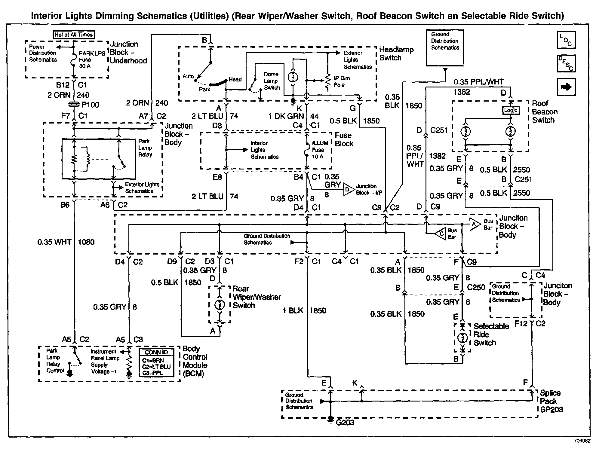 Interior Lights Dimming Schematics: Utilities (Rear Wiper/Washer Switch, Roof Beacon Switch An Selectable Ride Switch):