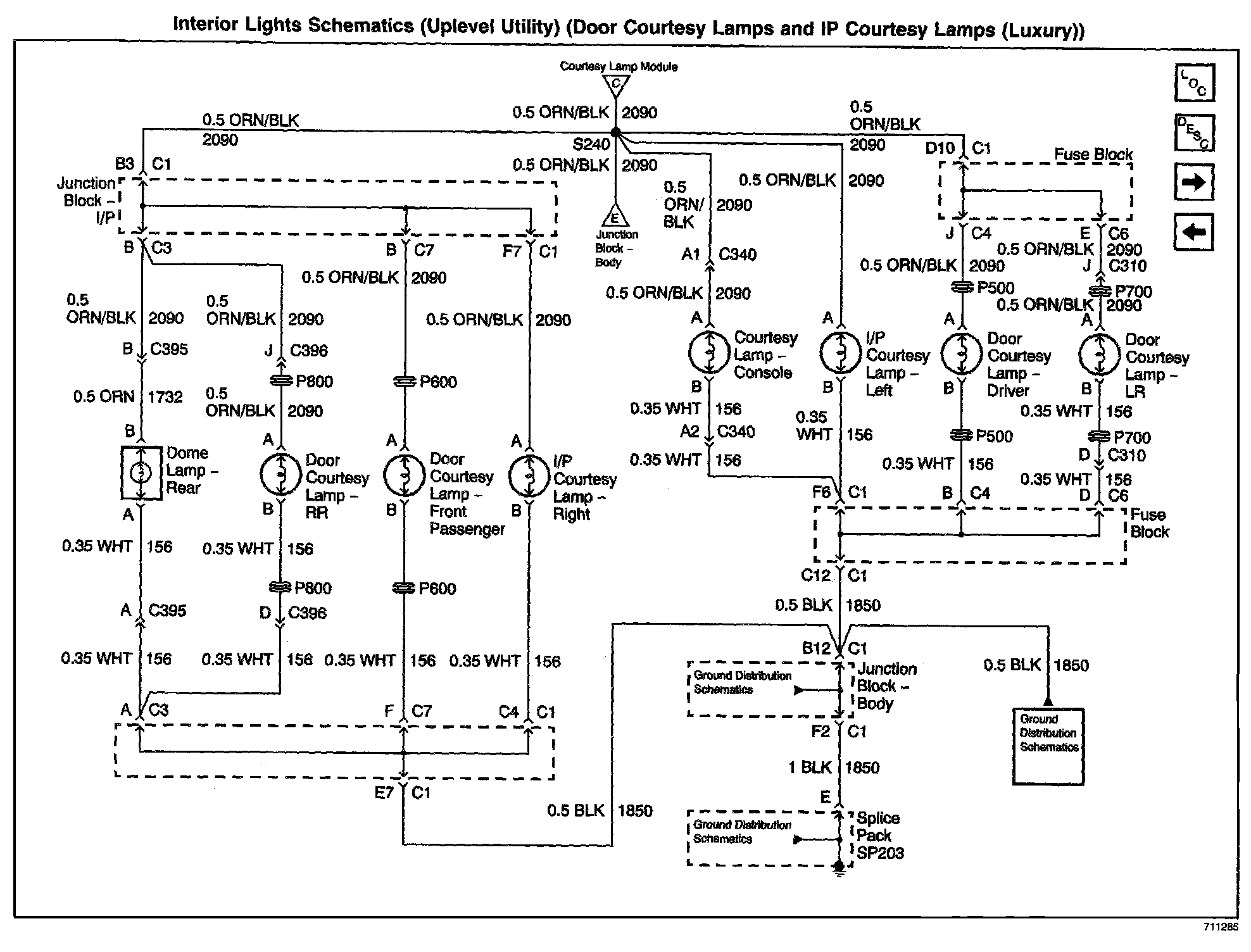 Interior Lights Schematics: Uplevel Utility (Door Courtesy Lamps And IP Courtesy Lamps (Luxury)):