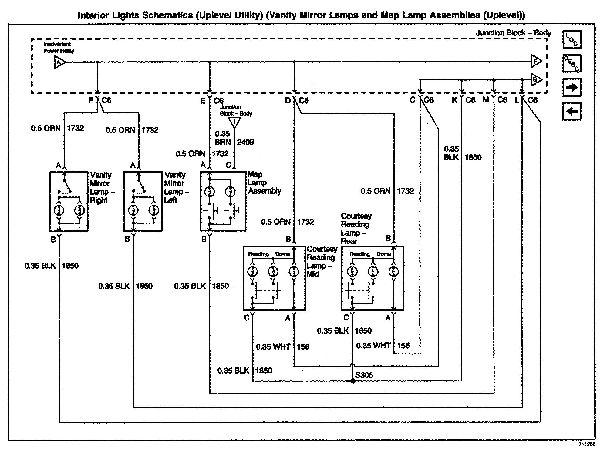 Interior Lights Schematics: Uplevel Utility (Vanity Mirror Lamps And Map Lamp Assemblies (Uplevel)):