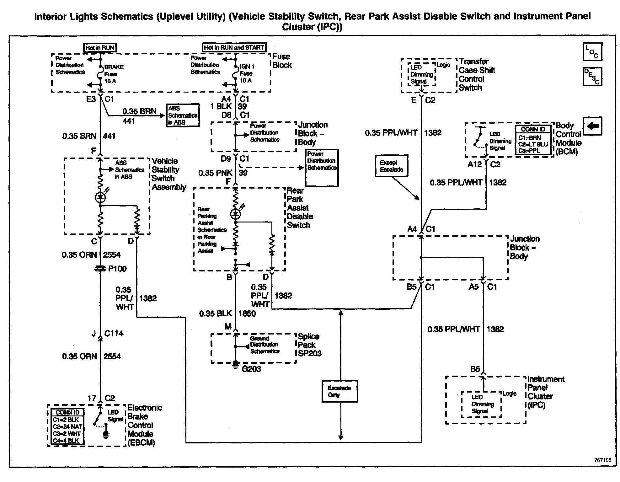 Interior Lights Schematics: Uplevel Utility (Vehicle Stability Switch, Rear Park Assist Disable Switch And Instrument Panel Cluster (IPC)):