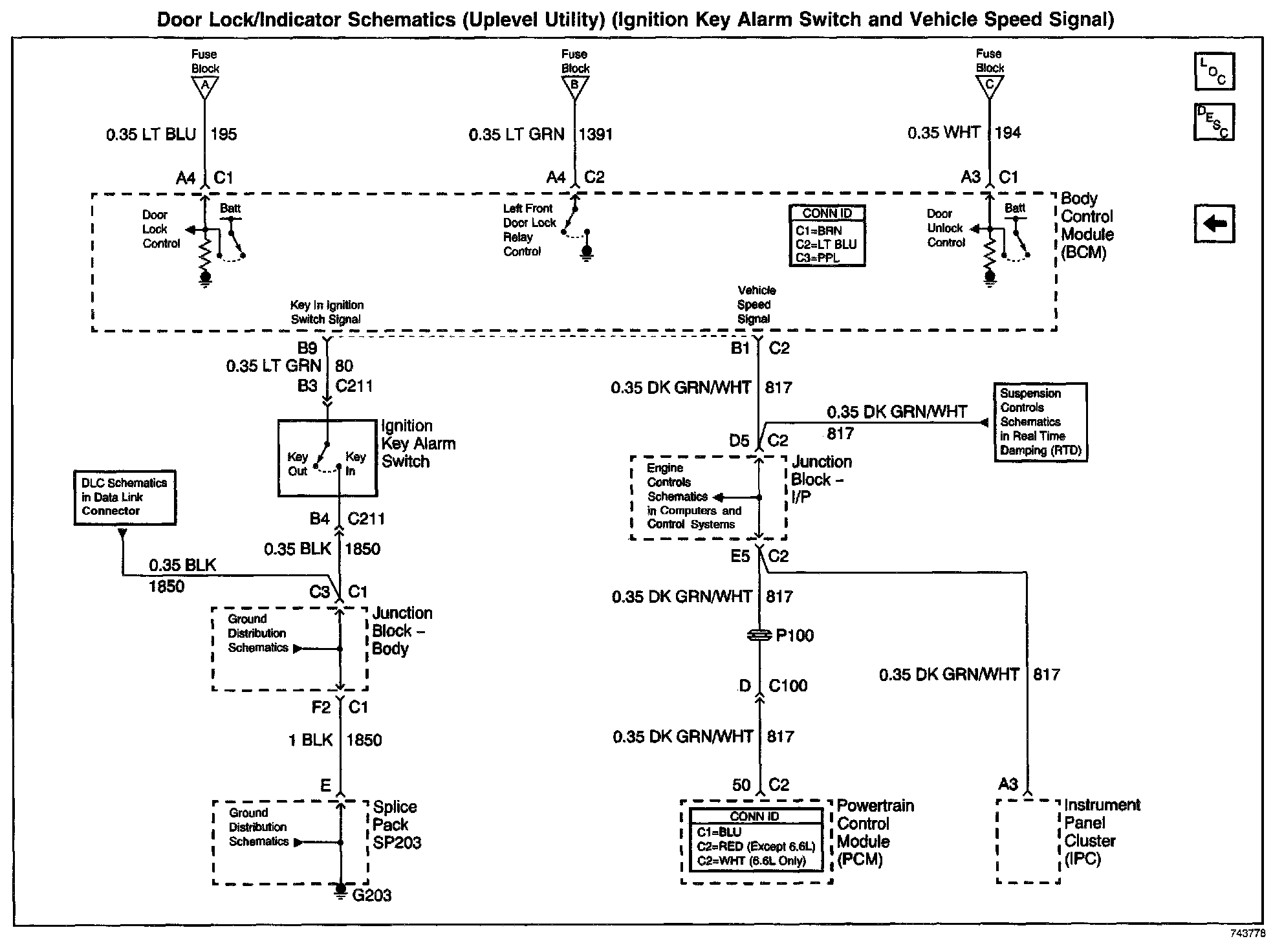 Door Lock/Indicator Schematics: Uplevel Utility (Ignition Key Alarm Switch and Vehicle Speed Signal):