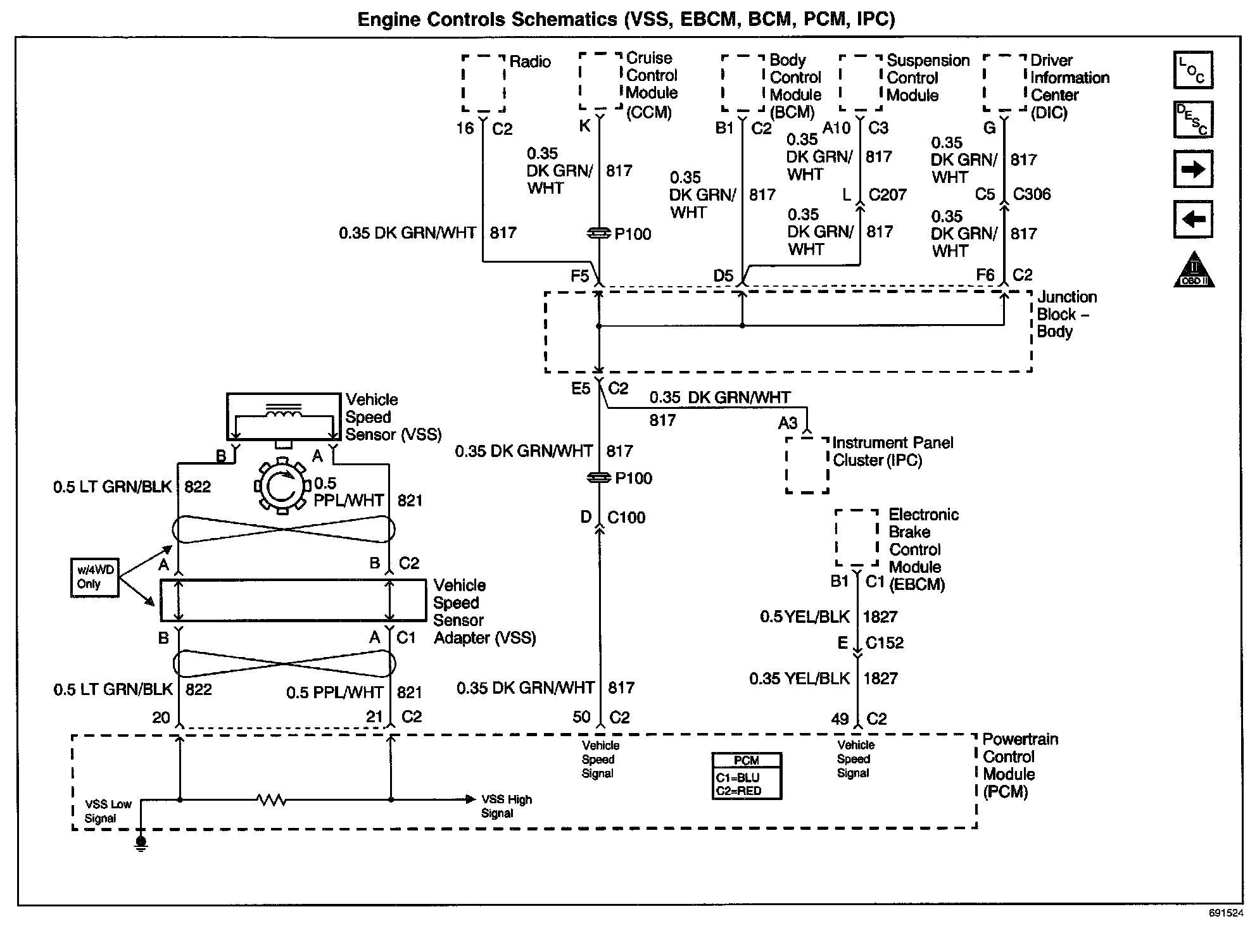 Engine Controls Schematics: VSS, EBCM, BCM, PCM, IPC: