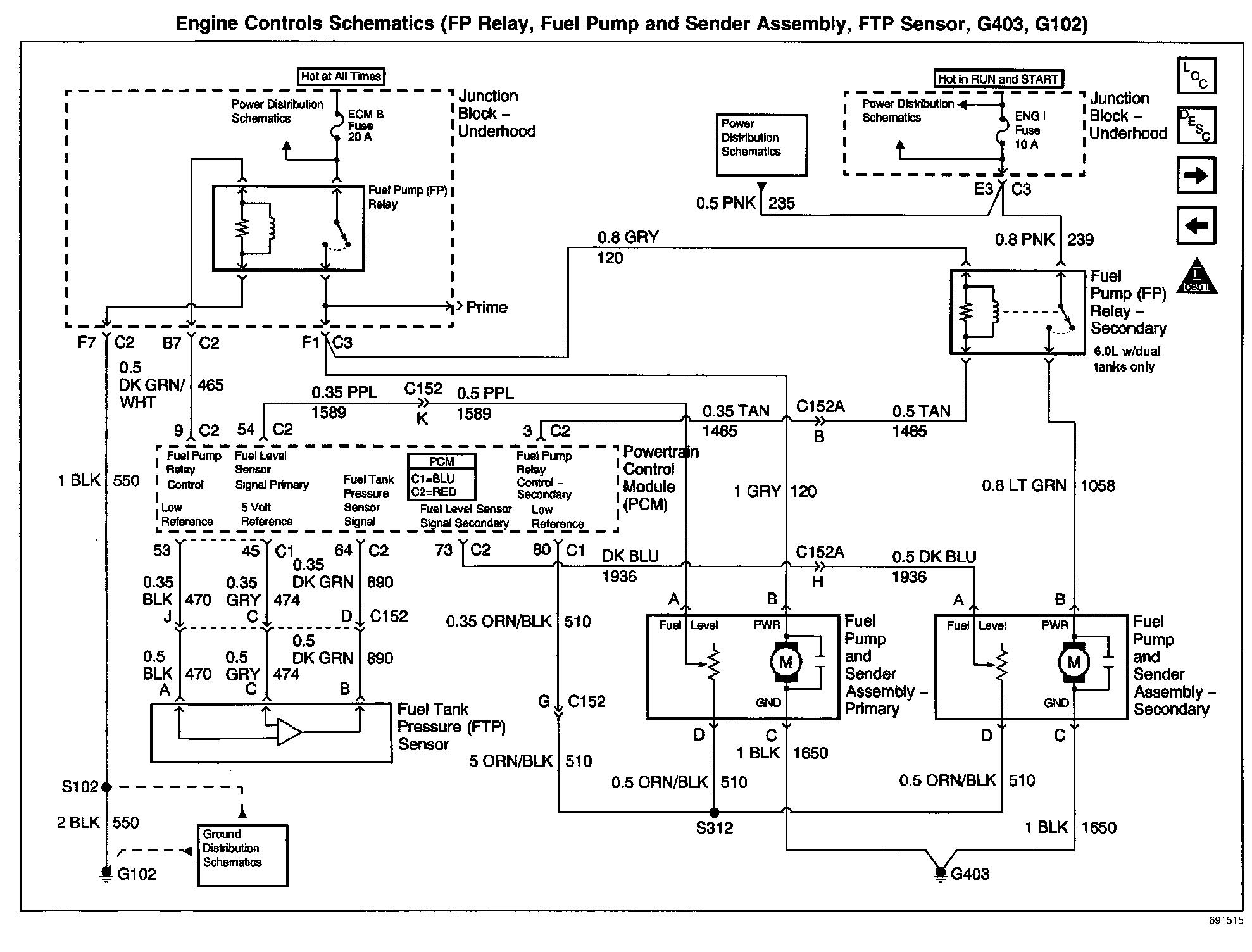 Engine Controls Schematics: FP Relay, Fuel Pump And Sender Assembly, FTP Sensor, G403, G102: