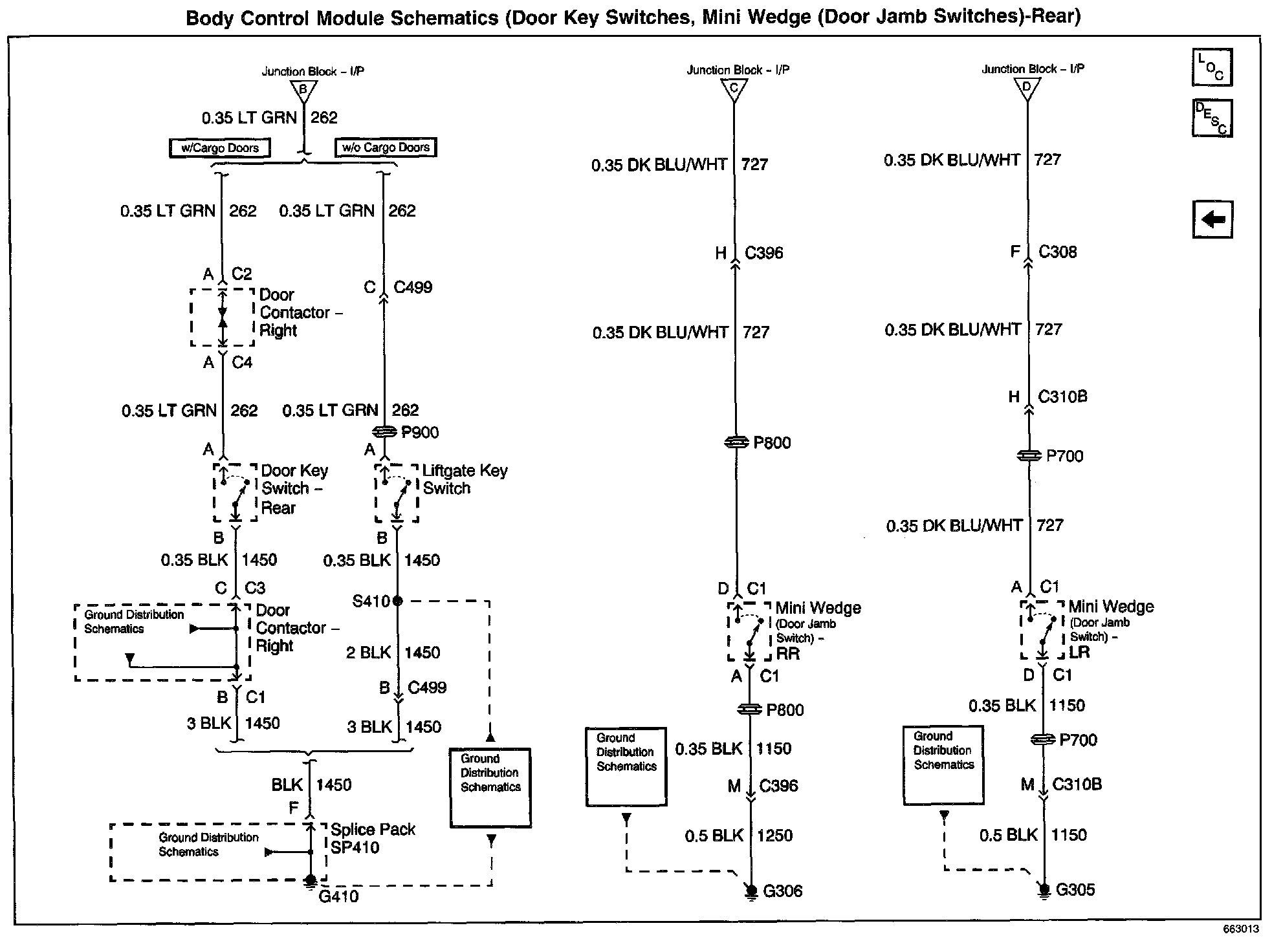 Body Control Module Schematics: Door Key Switches, Mini Wedge (Door Jamb Switches) - Rear: