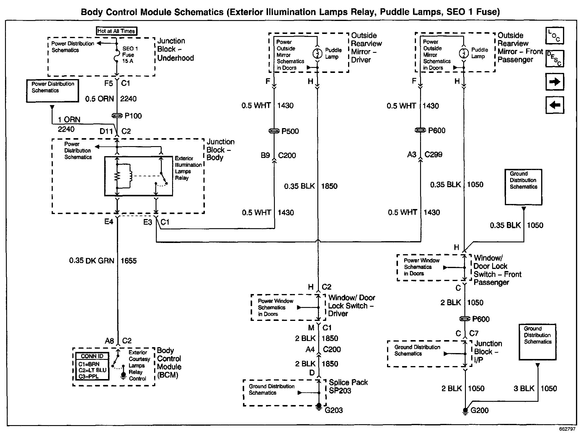 Body Control Module Schematics: Exterior Illumination Lamps Relay, Puddle Lamps, SEO 1 Fuse: