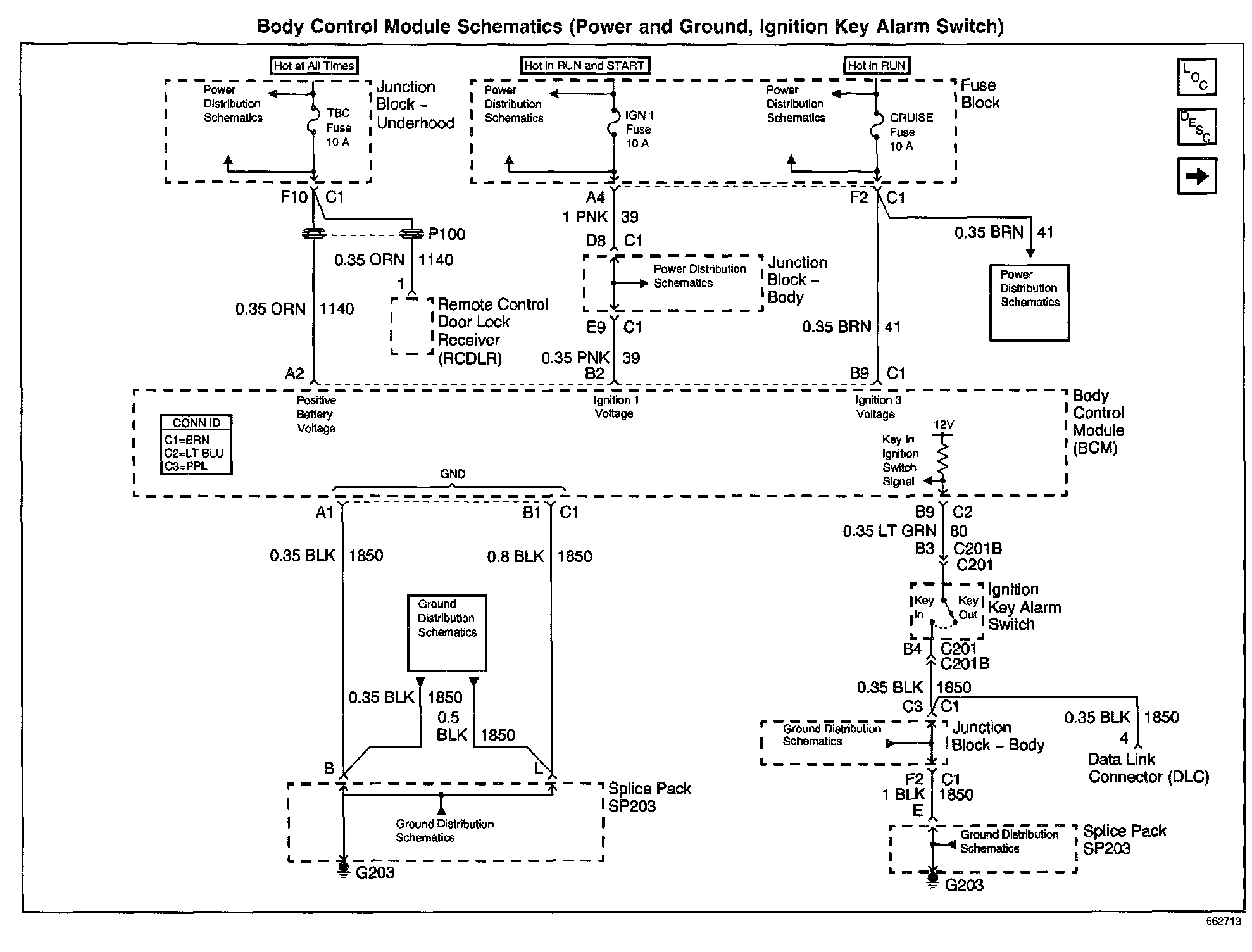 Body Control Module Schematics: Power and Ground, Ignition Key Alarm Switch: