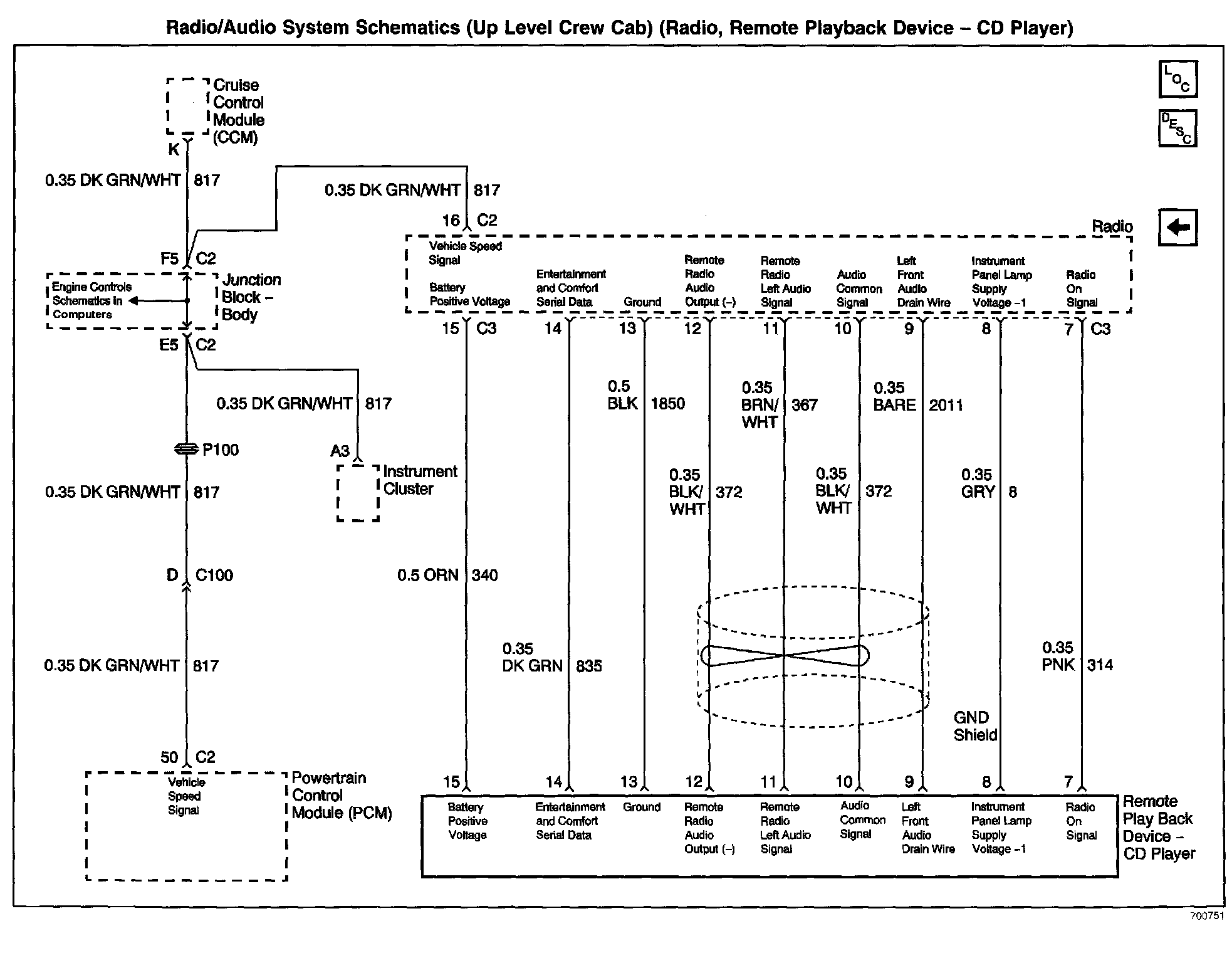 Radio/Audio System Schematics: Up Level Crew Cab (Radio, Remote Playback Device - CD Player):