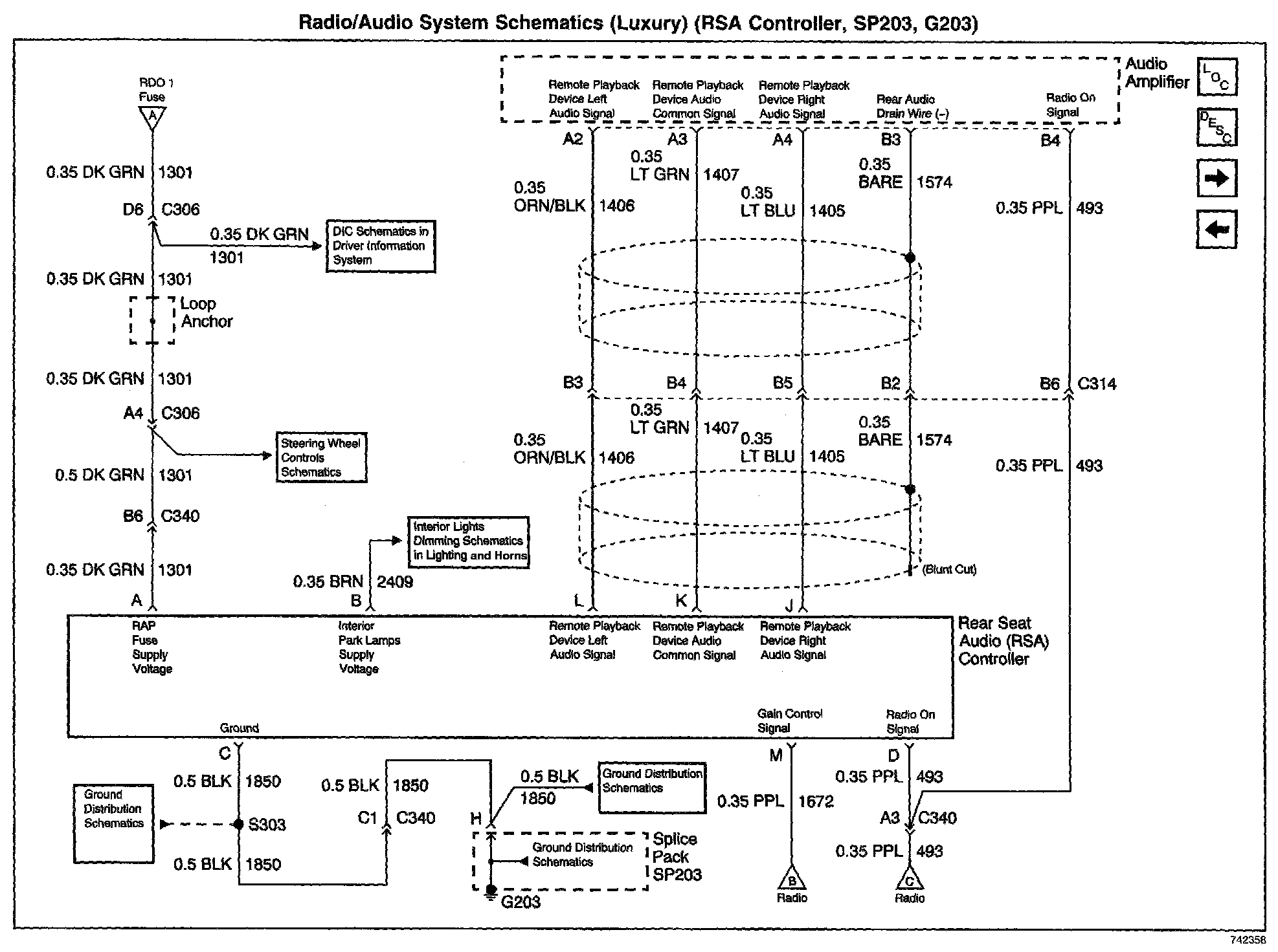 Radio/Audio System Schematics: Luxury (RSA Controller, SP203, G203):