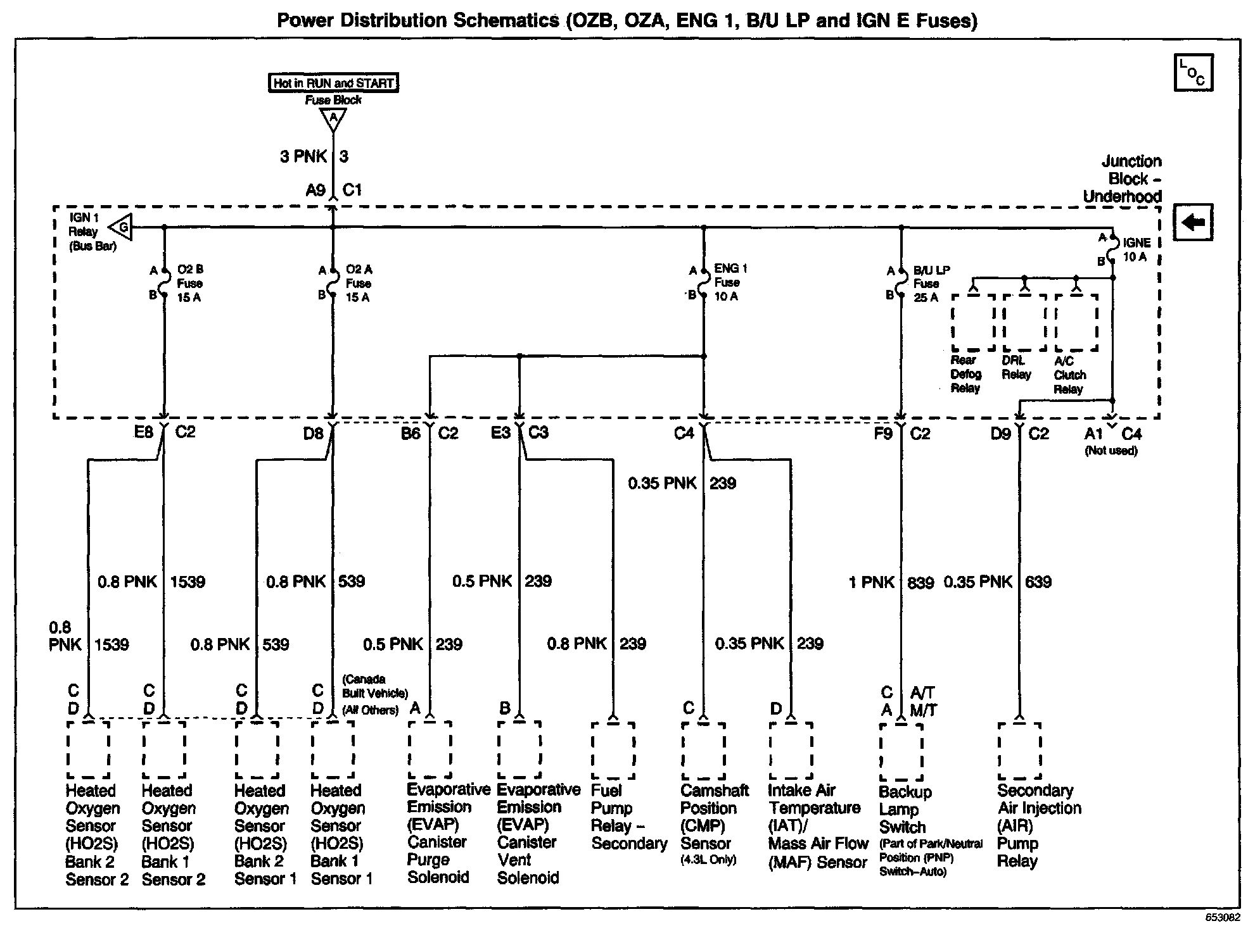 Power Distribution Schematics: OZB, OZA, ENG 1, B/U LP And IGN E Fuses: