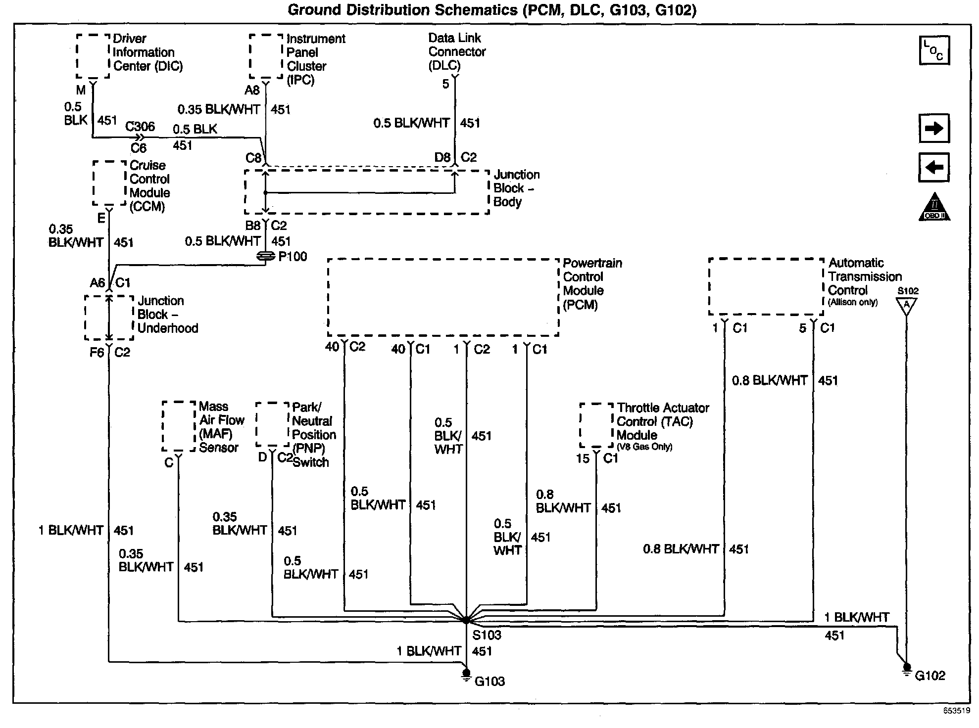 Ground Distribution Schematics: PCM, DLC, G103, G102: