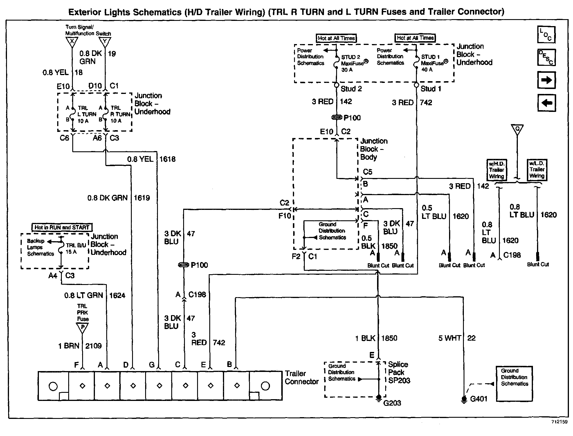 Exterior Lights Schematics: H/D Trailer Wiring (TRL R TURN And L TURN Fuses And Trailer Connector):