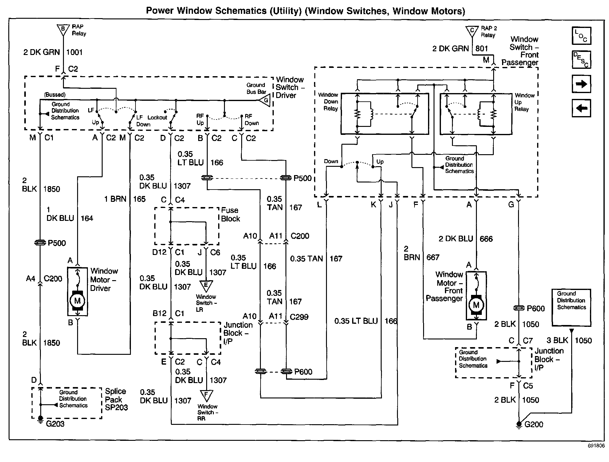 Power Window Schematics: Utility (Window Switches, Window Motors):