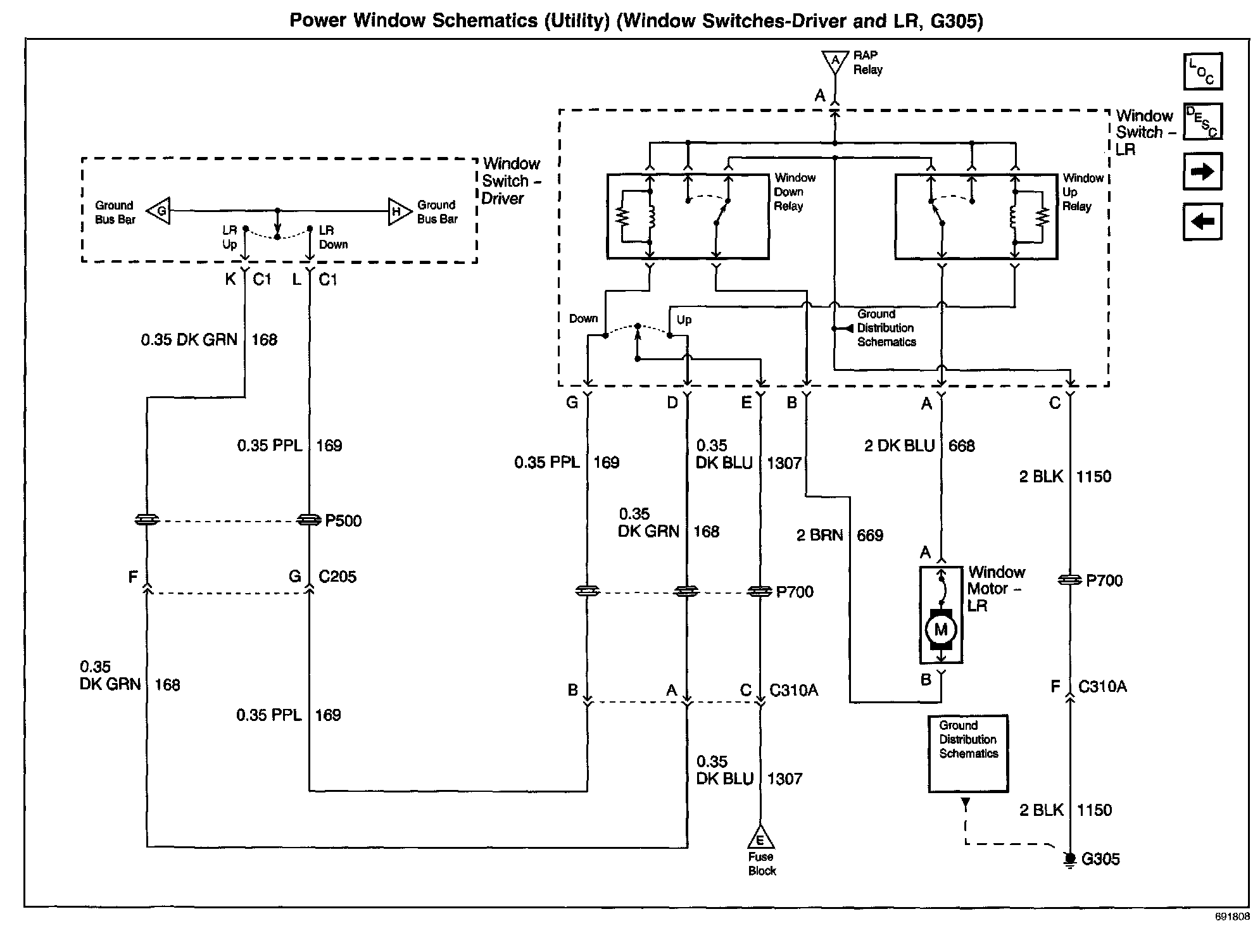 Power Window Schematics: Utility (Window Switches - Driver and LR, G305):